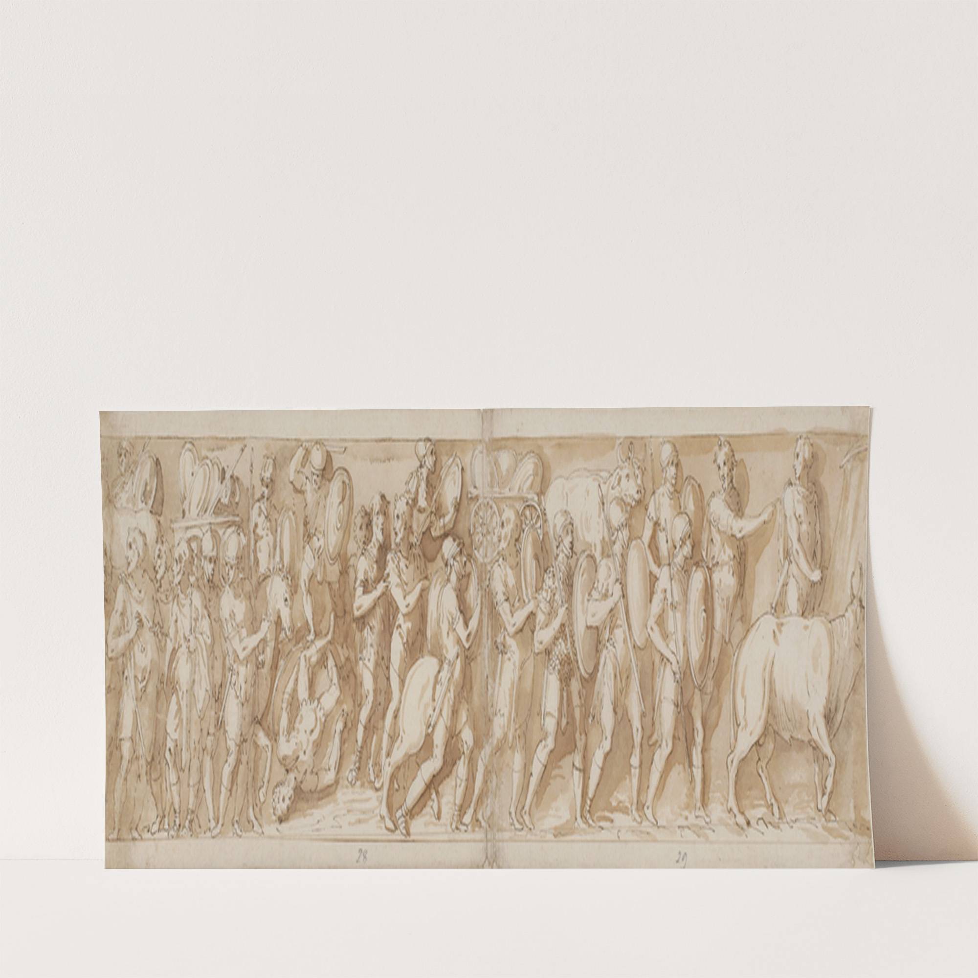 Romere på march; Marcus Aurelius, Pompejus og en oppasser overværer marchen; ophold på marchen by Giovanni Guerra - Wall Art Print