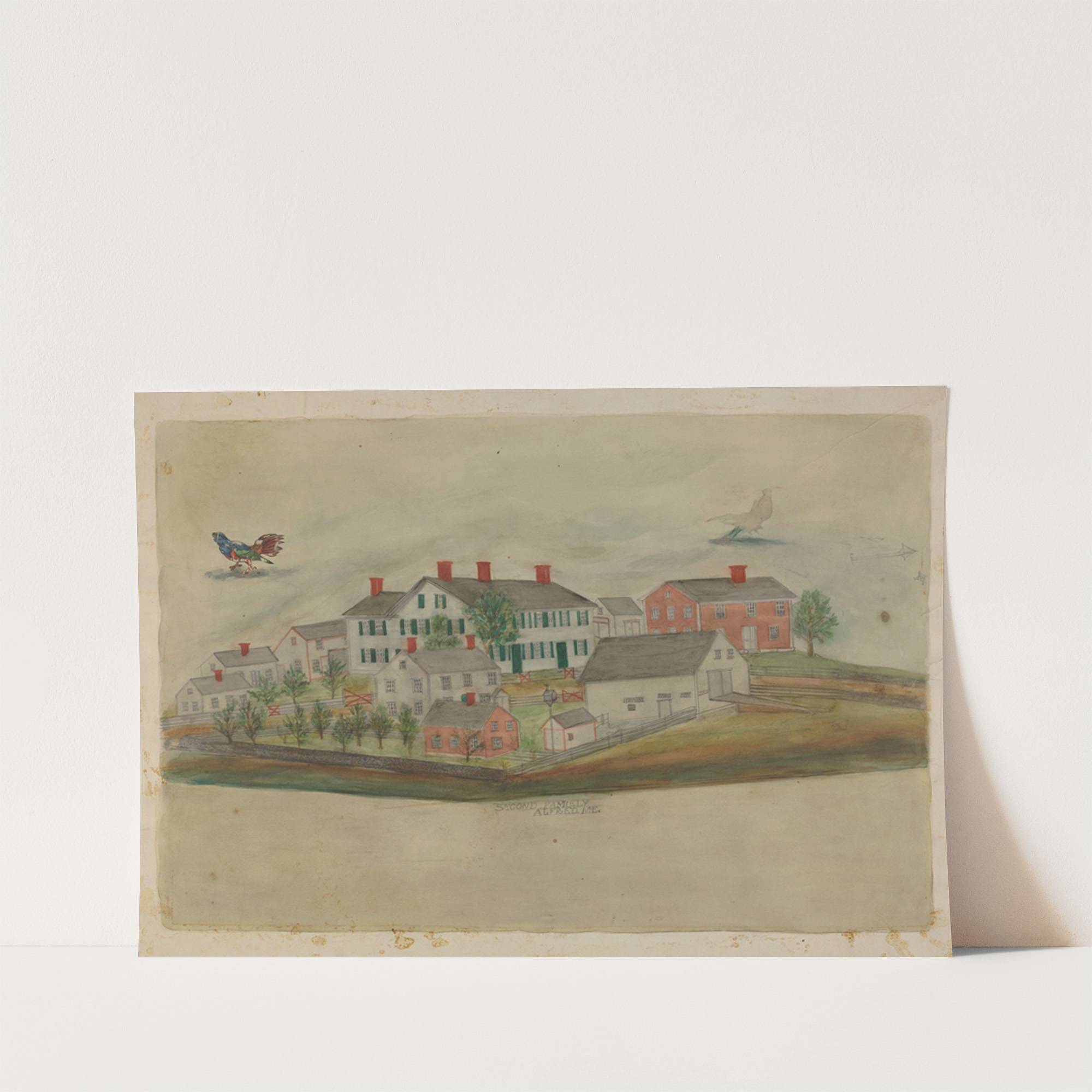 This charming watercolor painting, titled "Second Family House" by Adelaide Dyball, captures a serene rural village scene with remarkable attention to detail and color. The foreground features a row of quaint, multi-storied homes in various pastel shades of white, red,...