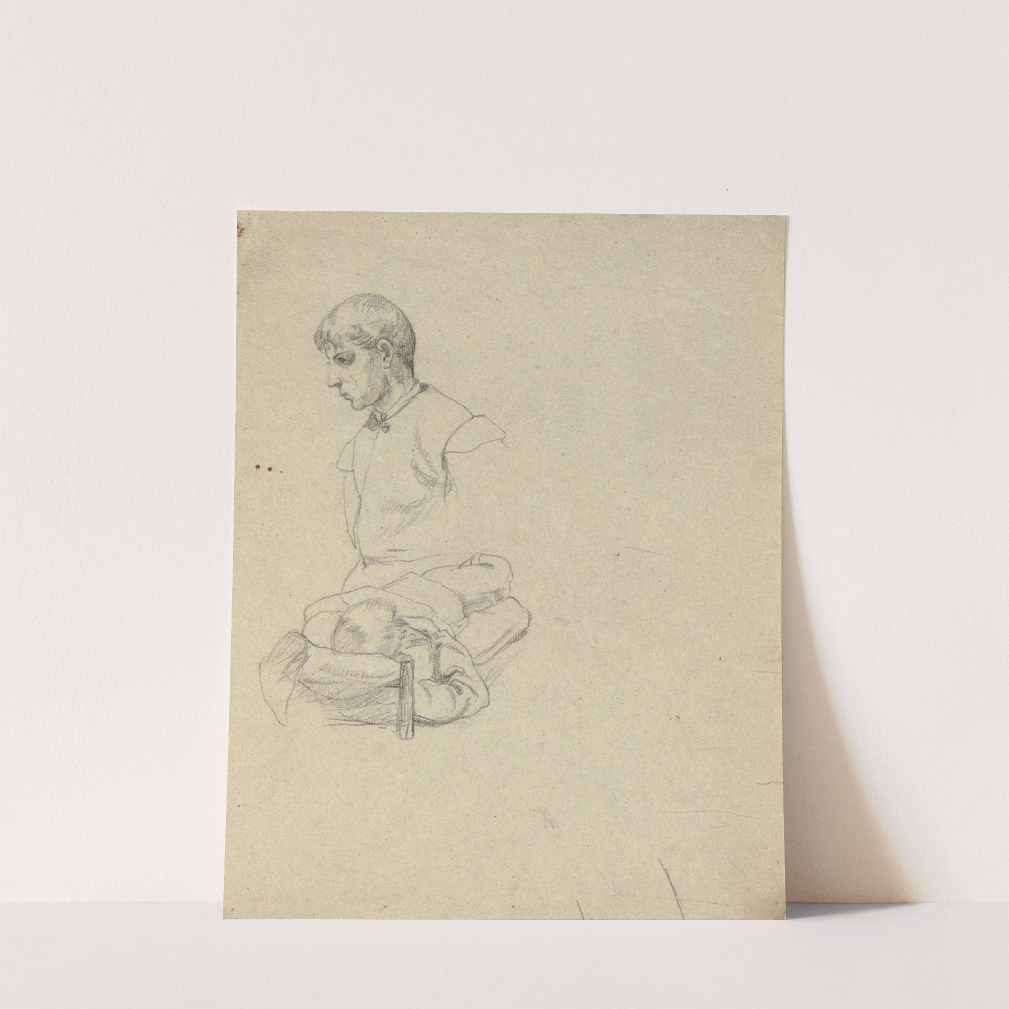 Two boys, sketch for Signing of the Compact in the Cabin of the Mayflower by Edwin White - Wall Art Print