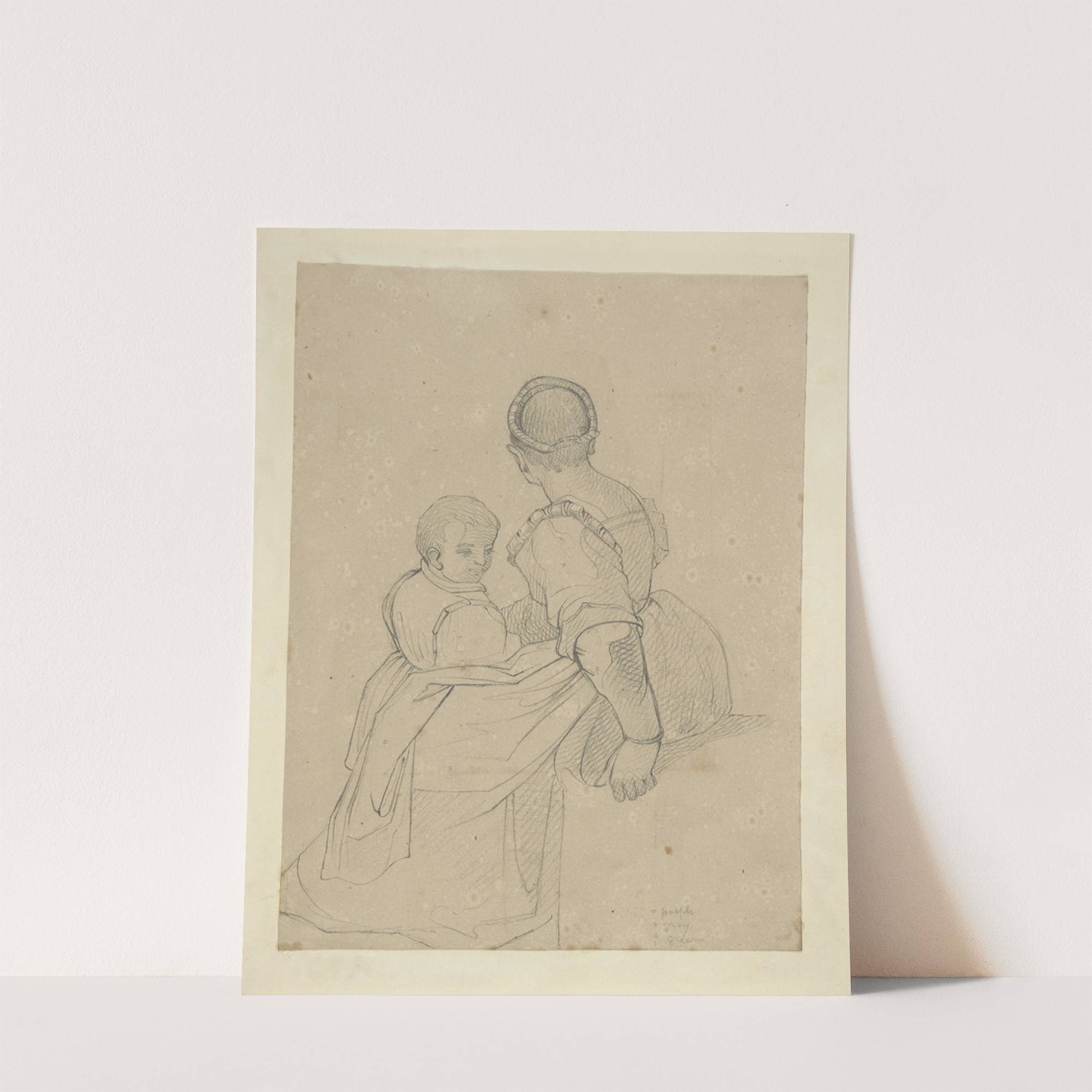 Woman with back turned toward viewer with boy on her lap by Stewart Watson  - Wall Art Print
