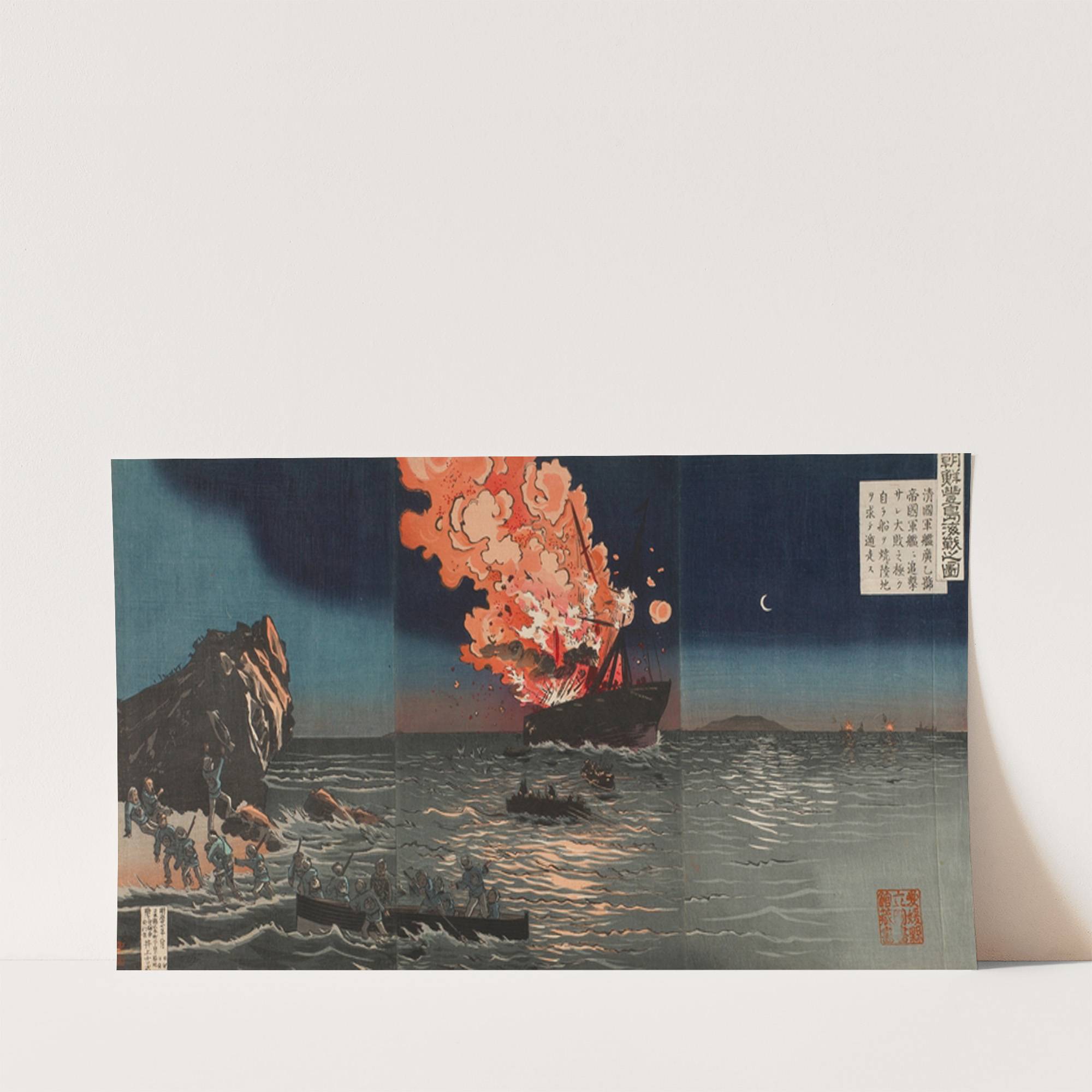 The Naval Battle of Pungdo in Korea (1894) by Kobayashi Kiyochika - Wall Art Print