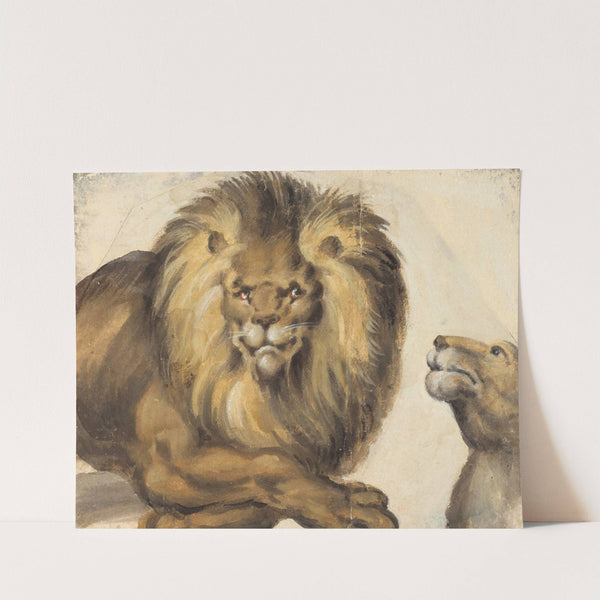 En hanløves forkrop og en hunløves hoved by Christoph Amberger - Wall Art Print