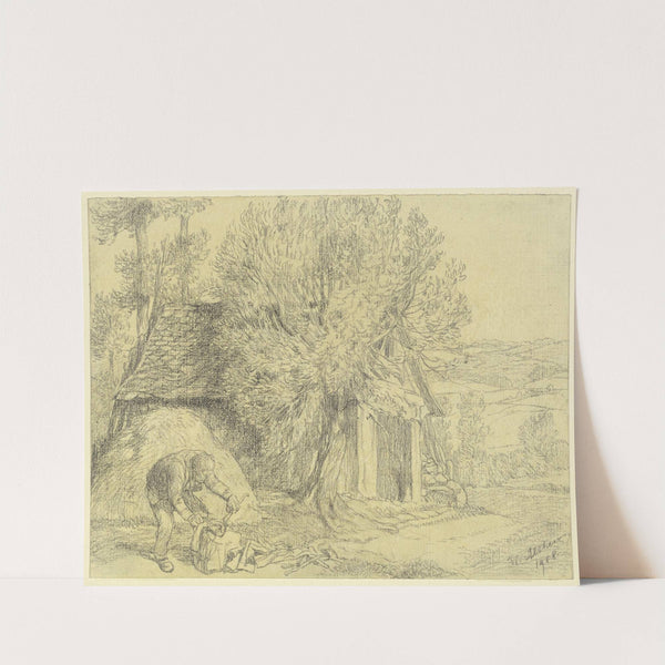 Bauer vor seinem Hause, Holz hackend by Wilhelm Altheim - Wall Art Print