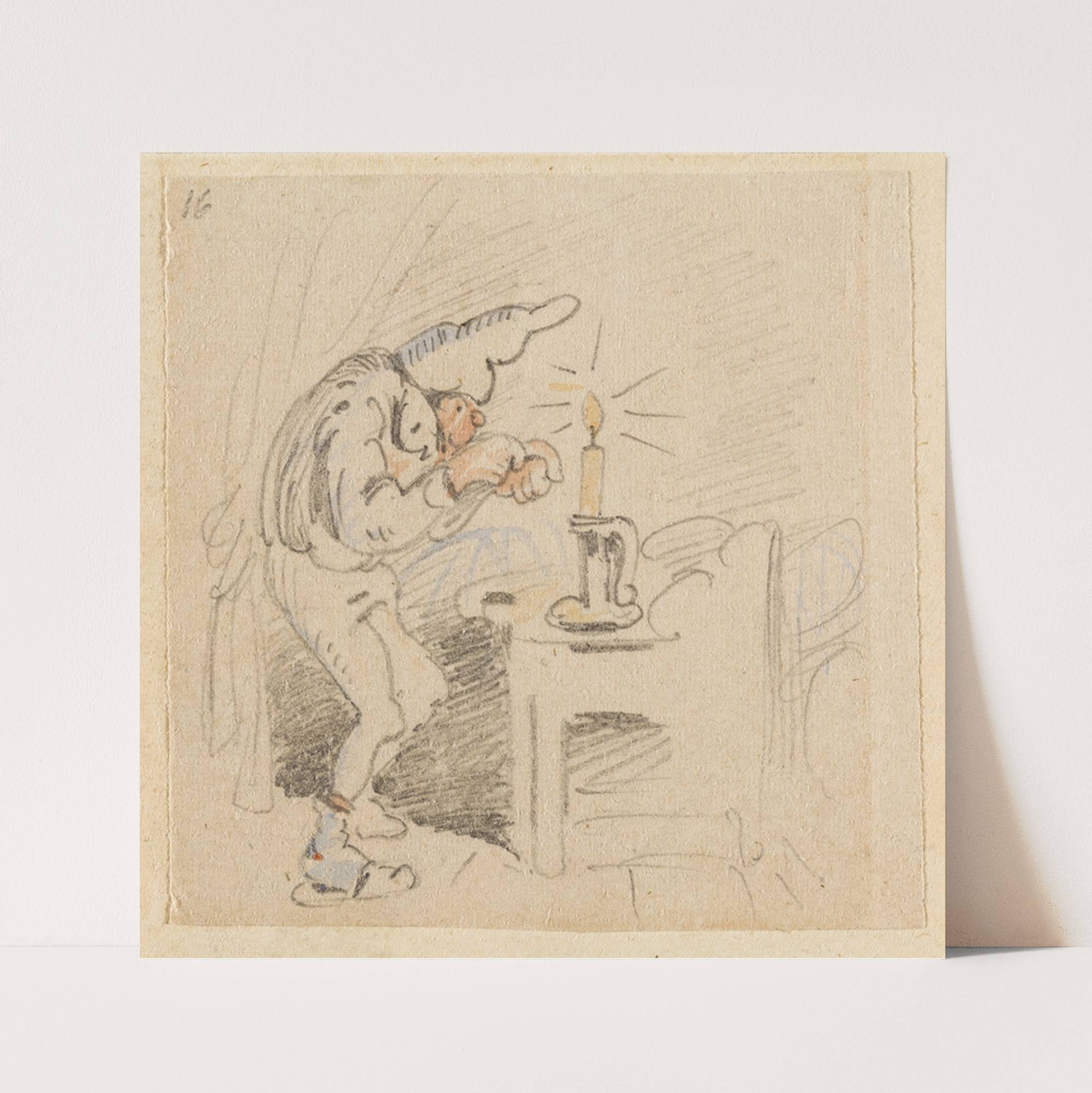 Die gestörte, aber glücklich wieder errungene Nachtruhe (Der Floh); 16 by Wilhelm Busch - Wall Art Print