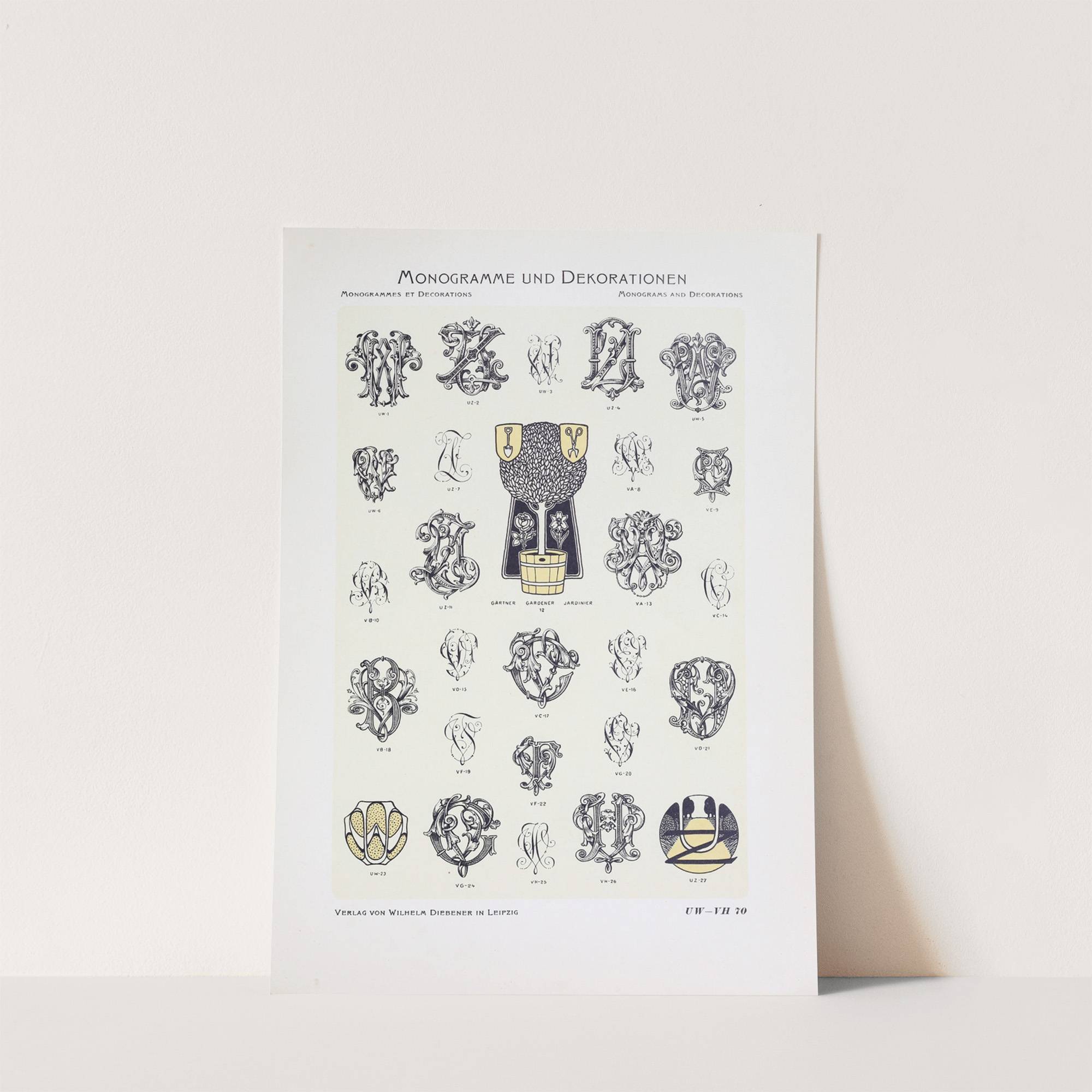 Monogrammes und Dekorationen Pl.070 by Wilhelm Diebener - Wall Art Print