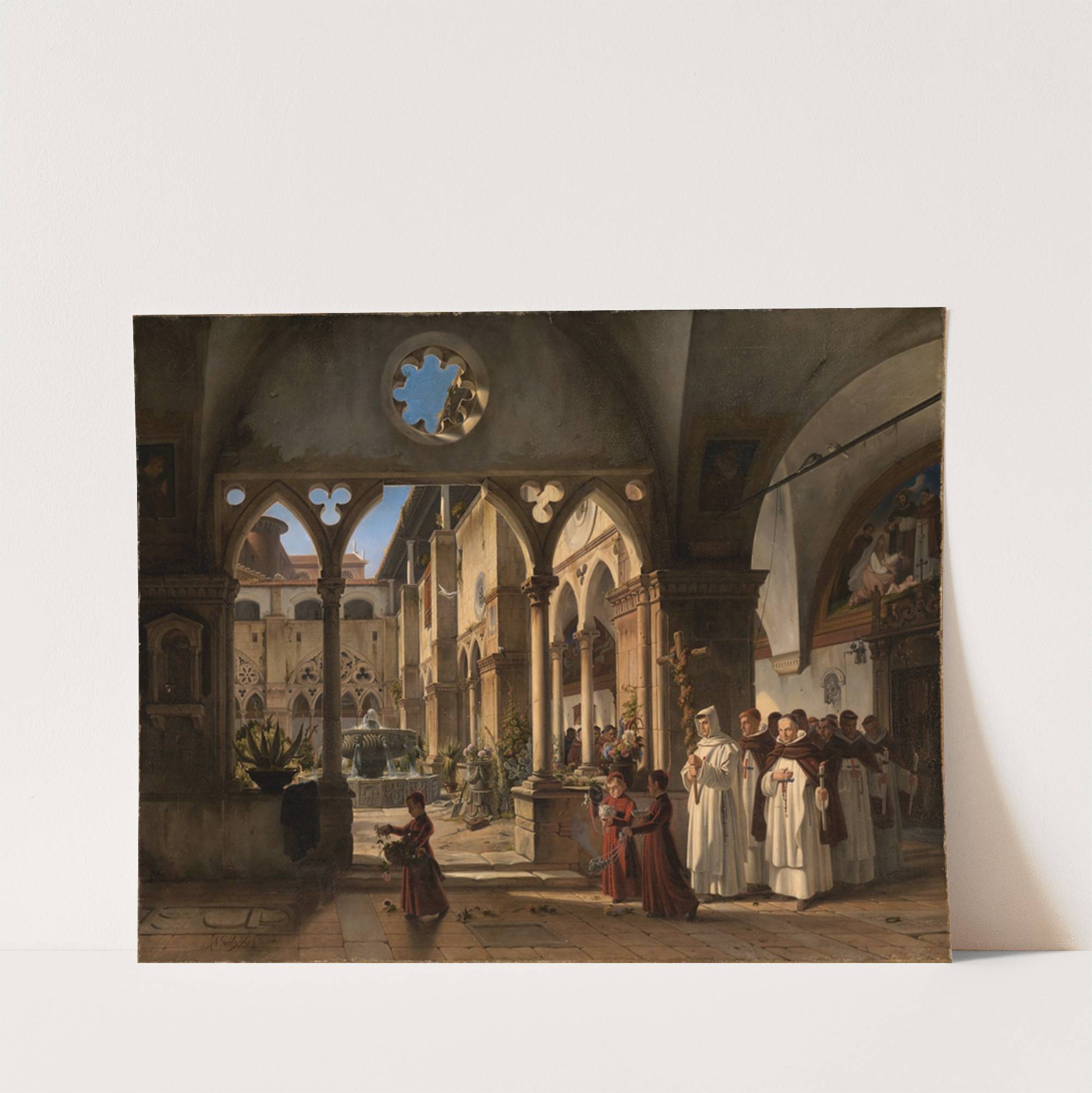 Klosterhof mit Prozession von Trinitariermönchen by Wilhelm Gail - Wall Art Print