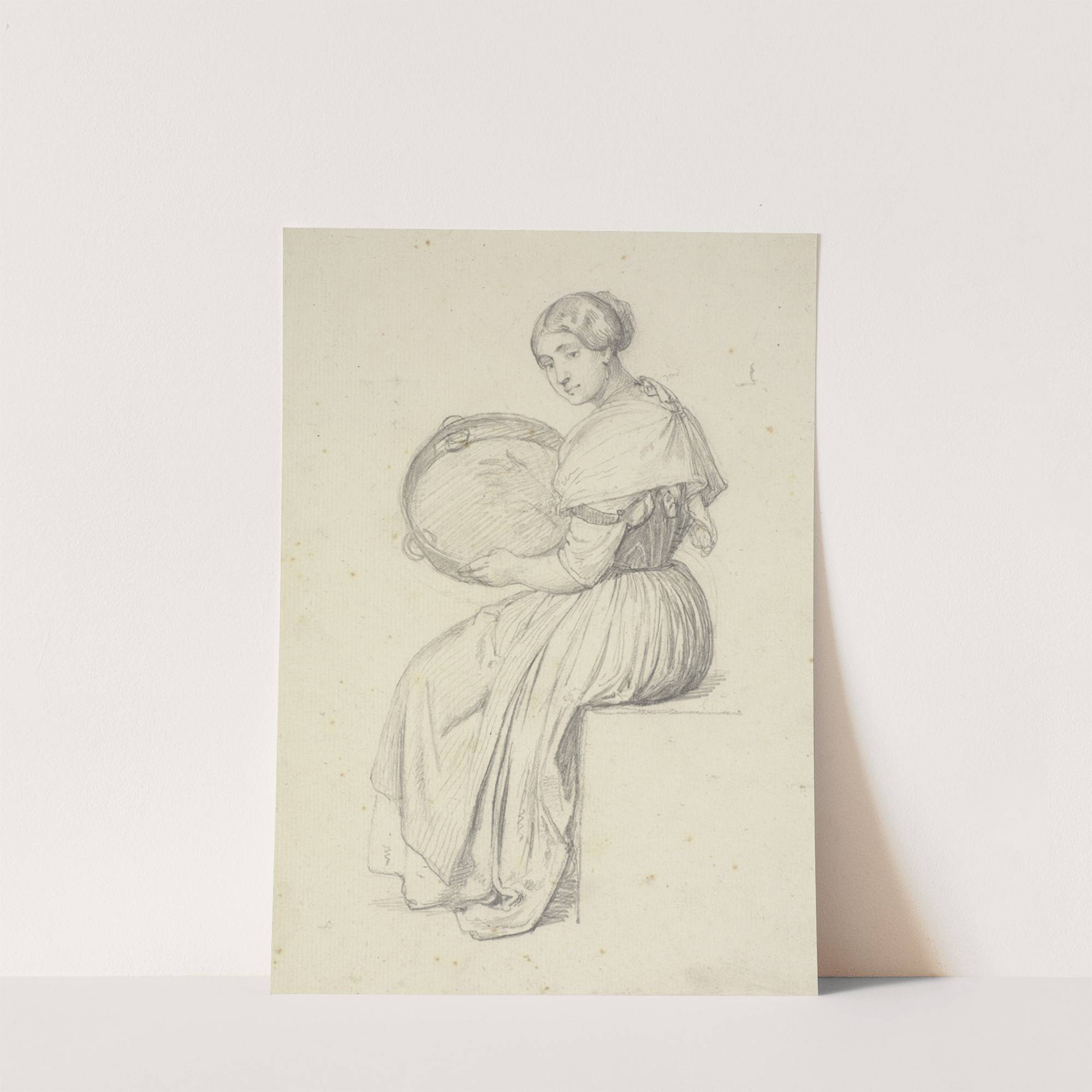 Siddende kvinde med tamburin by Wilhelm Marstrand - Wall Art Print