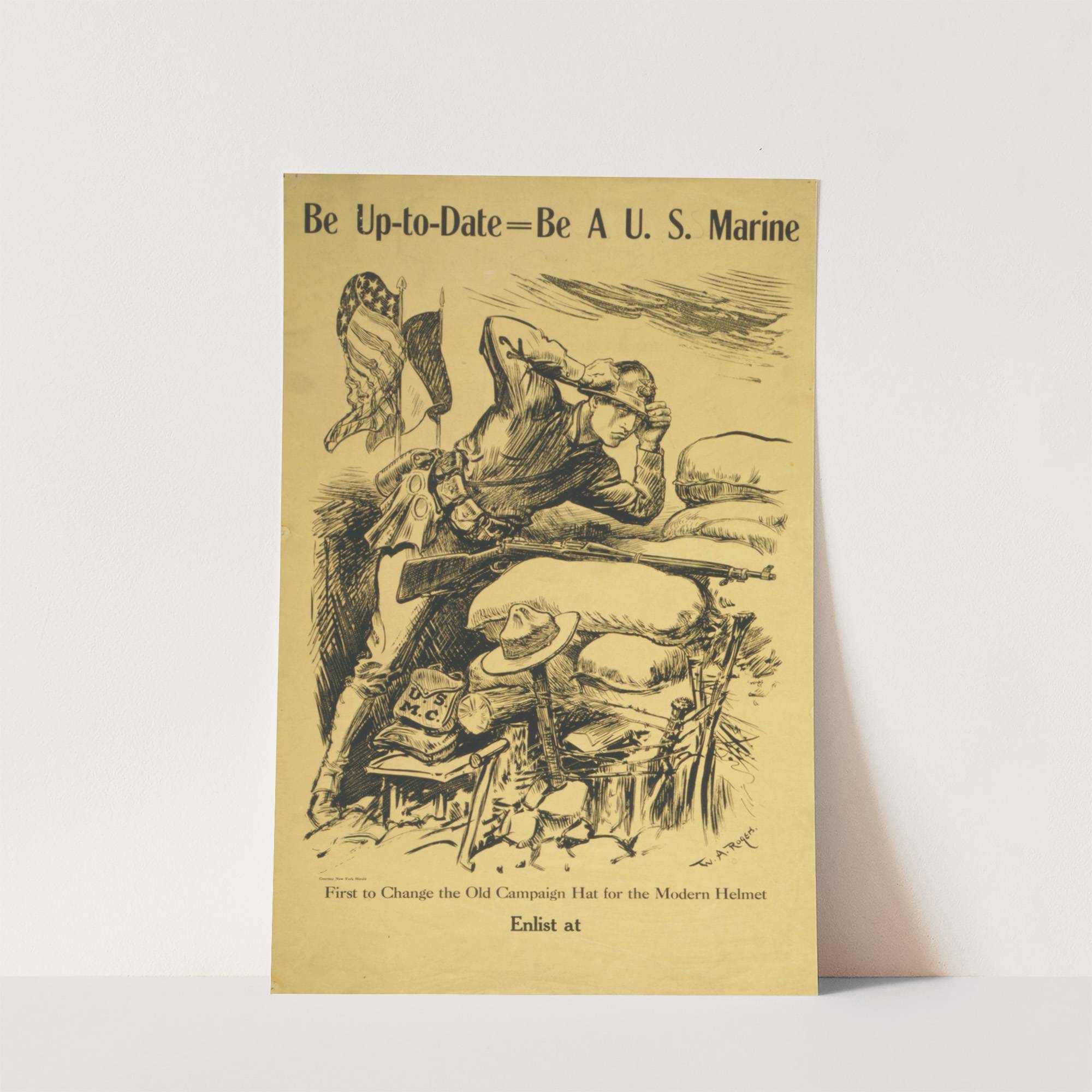 Be up-to-date – be a U.S. Marine First to change the old campaign hat for the modern helmet by William Allen Rogers - Wall Art Print