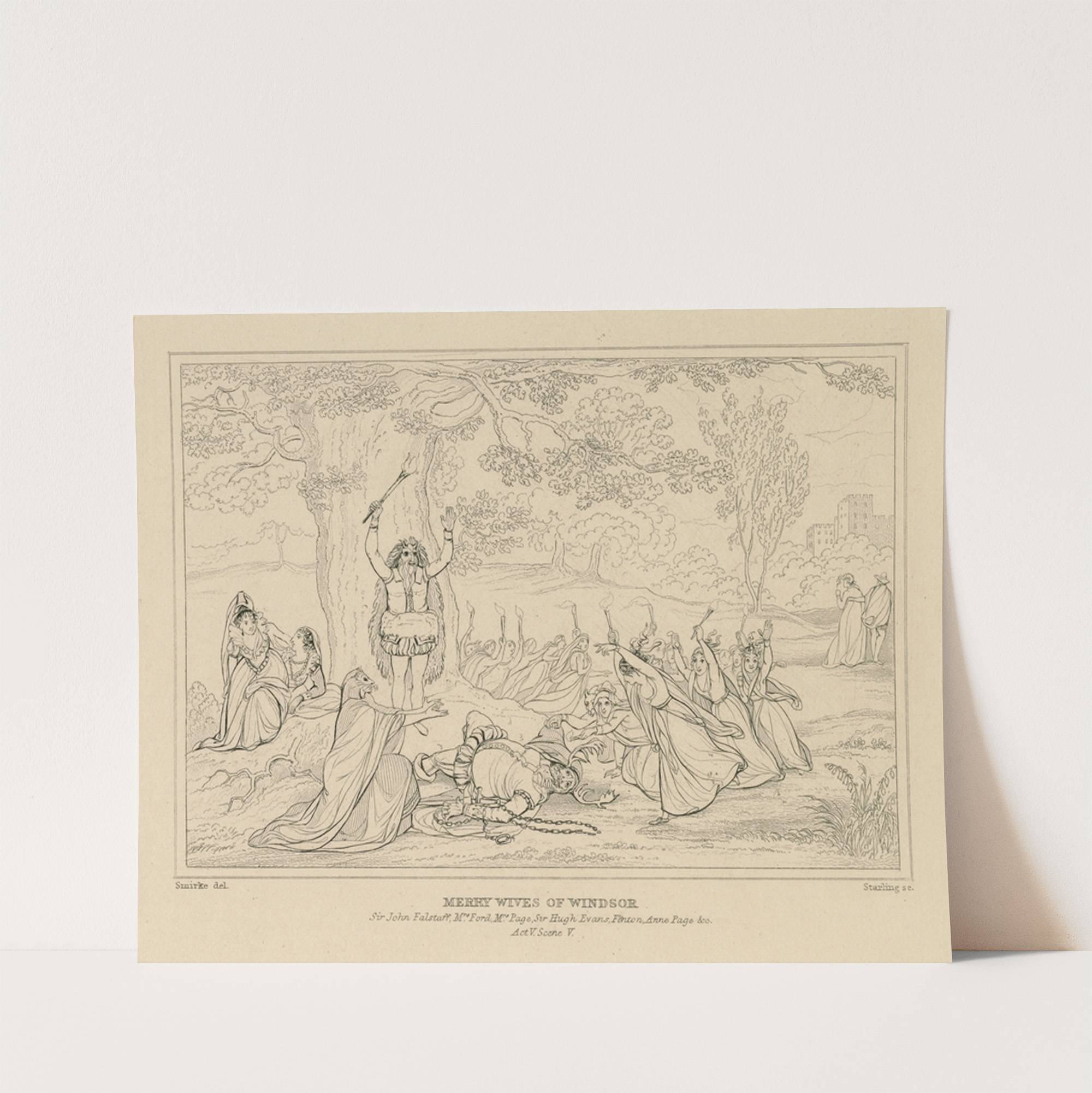 Merry wives of Windsor, act V, scene V, Windsor Park, Falstaff disguised with a buck’s head on &c Robt. (19th century) by William Francis Starling - Wall Art Print