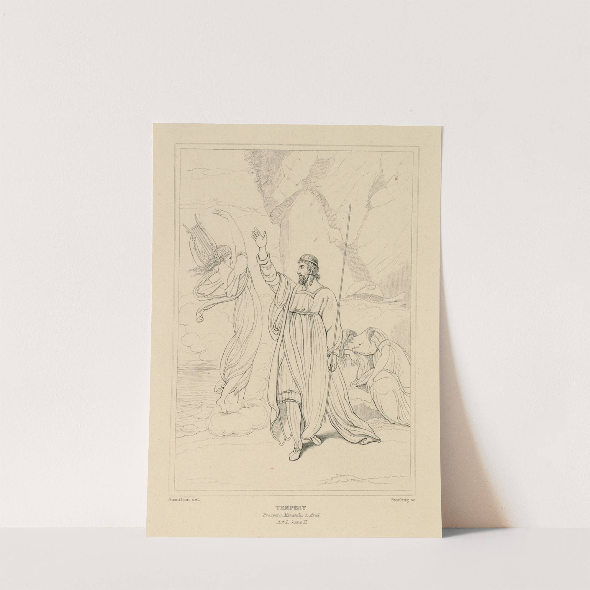 Tempest, act 1, scene 2, Prospero, Miranda, Ariel (19th century) by William Francis Starling - Wall Art Print