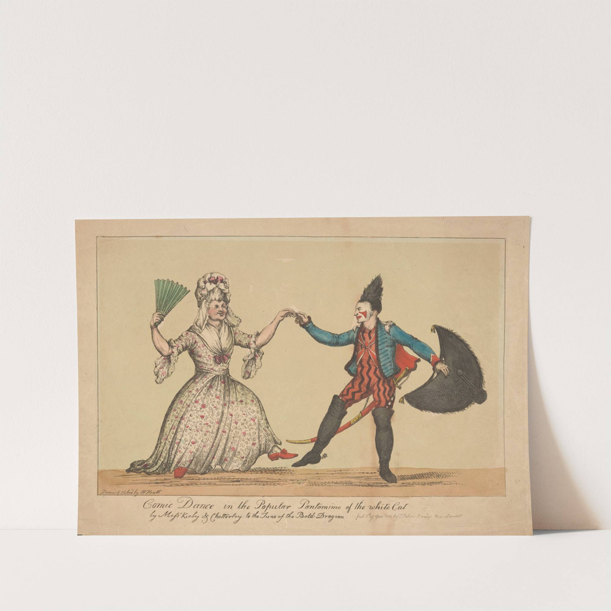 Comic dance in the popular Pantomime of the White Cat, by Messrs Kirby & Chatterley to the tune of the Bold Dragoon. (1812) by William Heath - Wall Art Print
