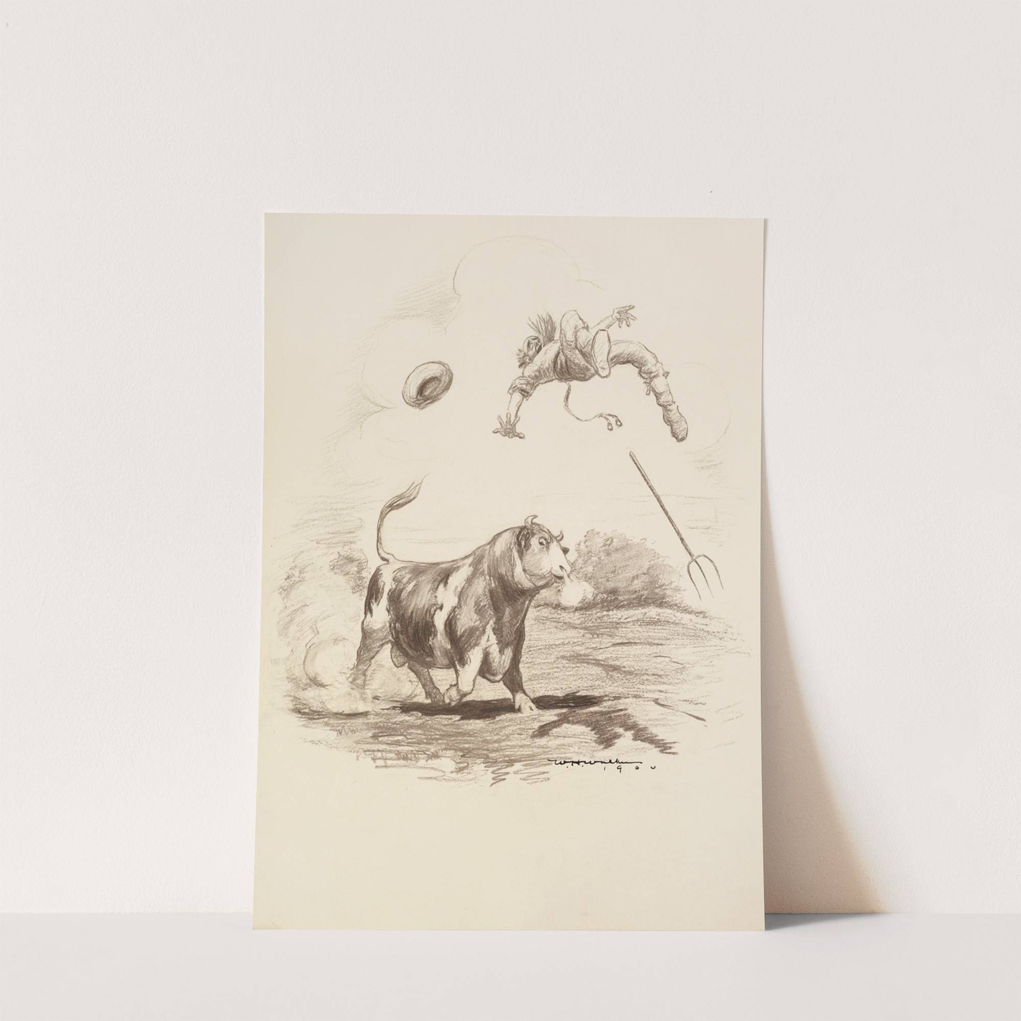 A farmer is tossed into the air by a large bull. (1900) by William Henry Walker - Wall Art Print