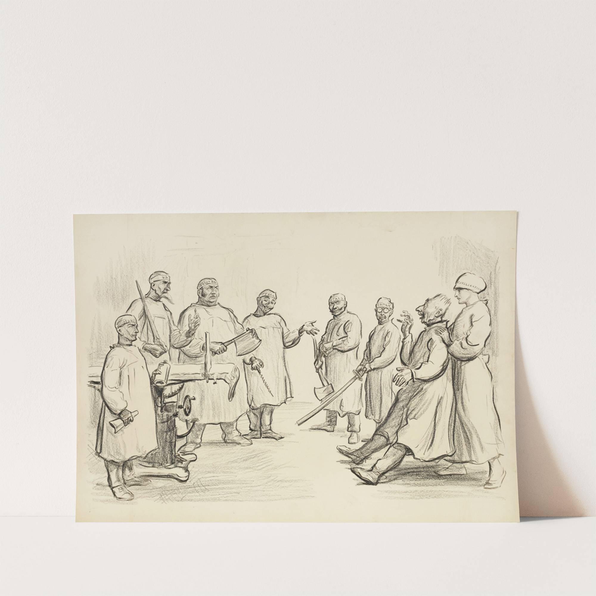 A frightened Kaiser Wilhelm II is pushed into an operating table by a nurse representing civilization (1918) by William Henry Walker - Wall Art Print