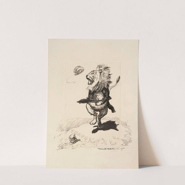 A lion in a suit (Great Britain) stands on a hill labeled ‘Transvaal’ and looks worried. (1901) by William Henry Walker - Wall Art Print