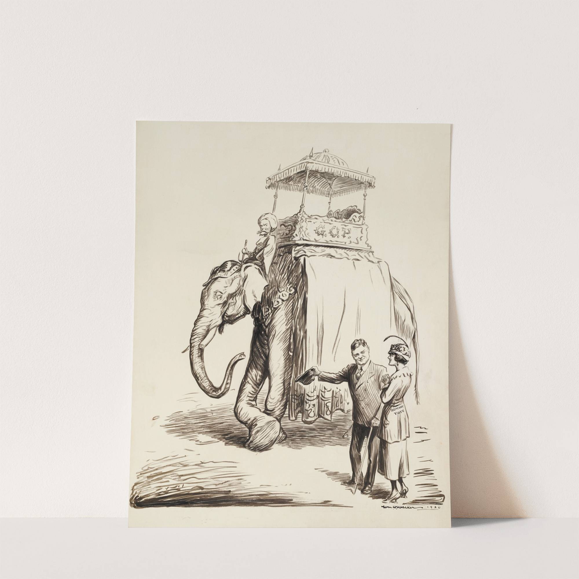 A man in a suit, representing politicians, invites a woman representing the woman’s vote to take a ride (1920) by William Henry Walker - Wall Art Print