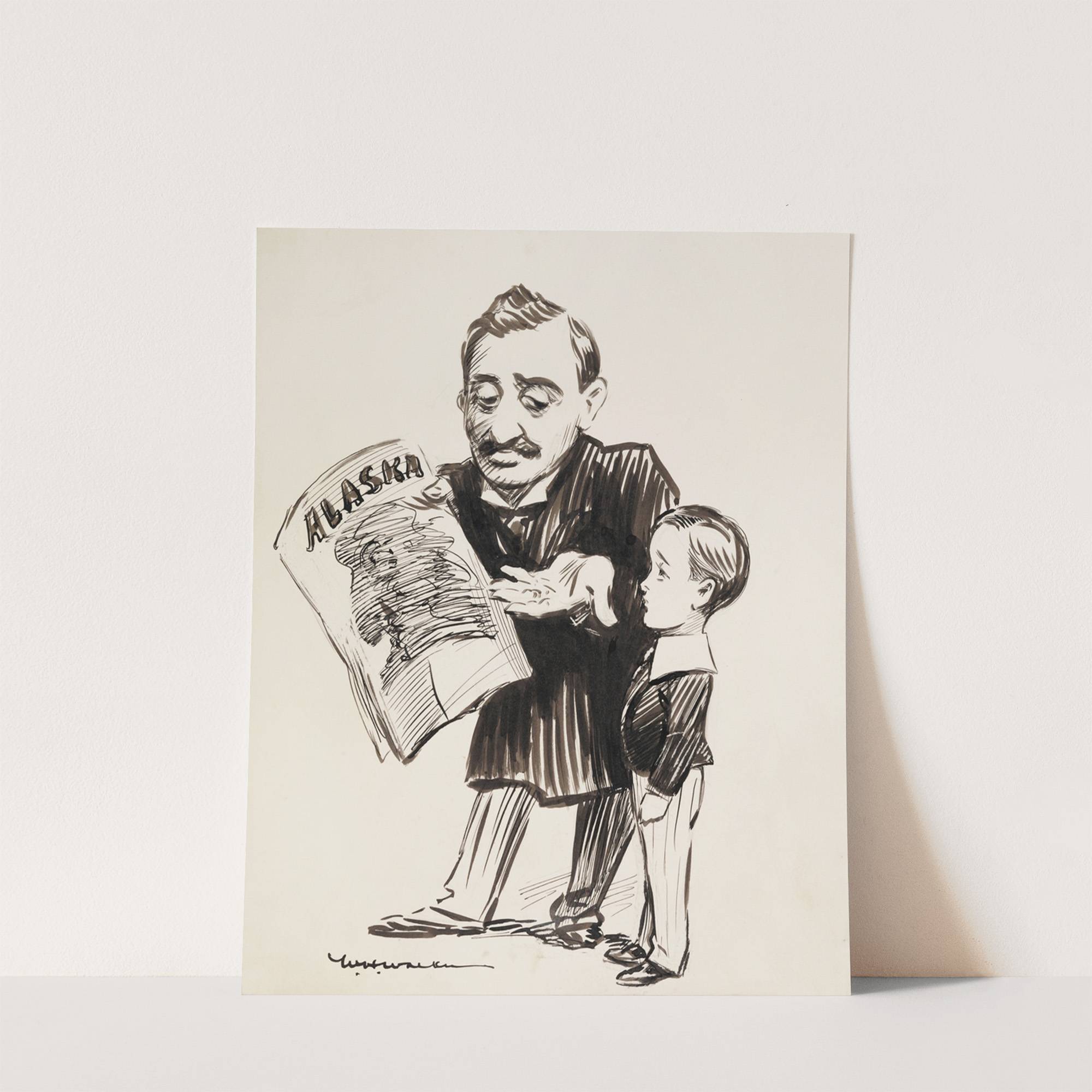 A man shows a boy a paper about Alaska. (1911) by William Henry Walker - Wall Art Print