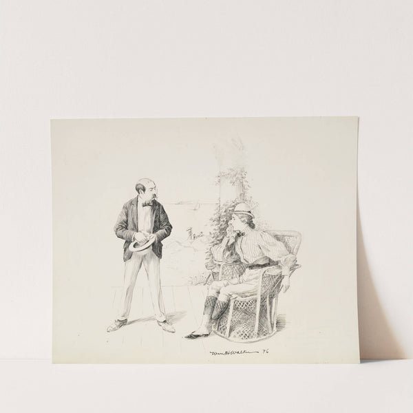 A man talks to a seated woman, who is crying, on a porch at a beach. (1896) by William Henry Walker - Wall Art Print