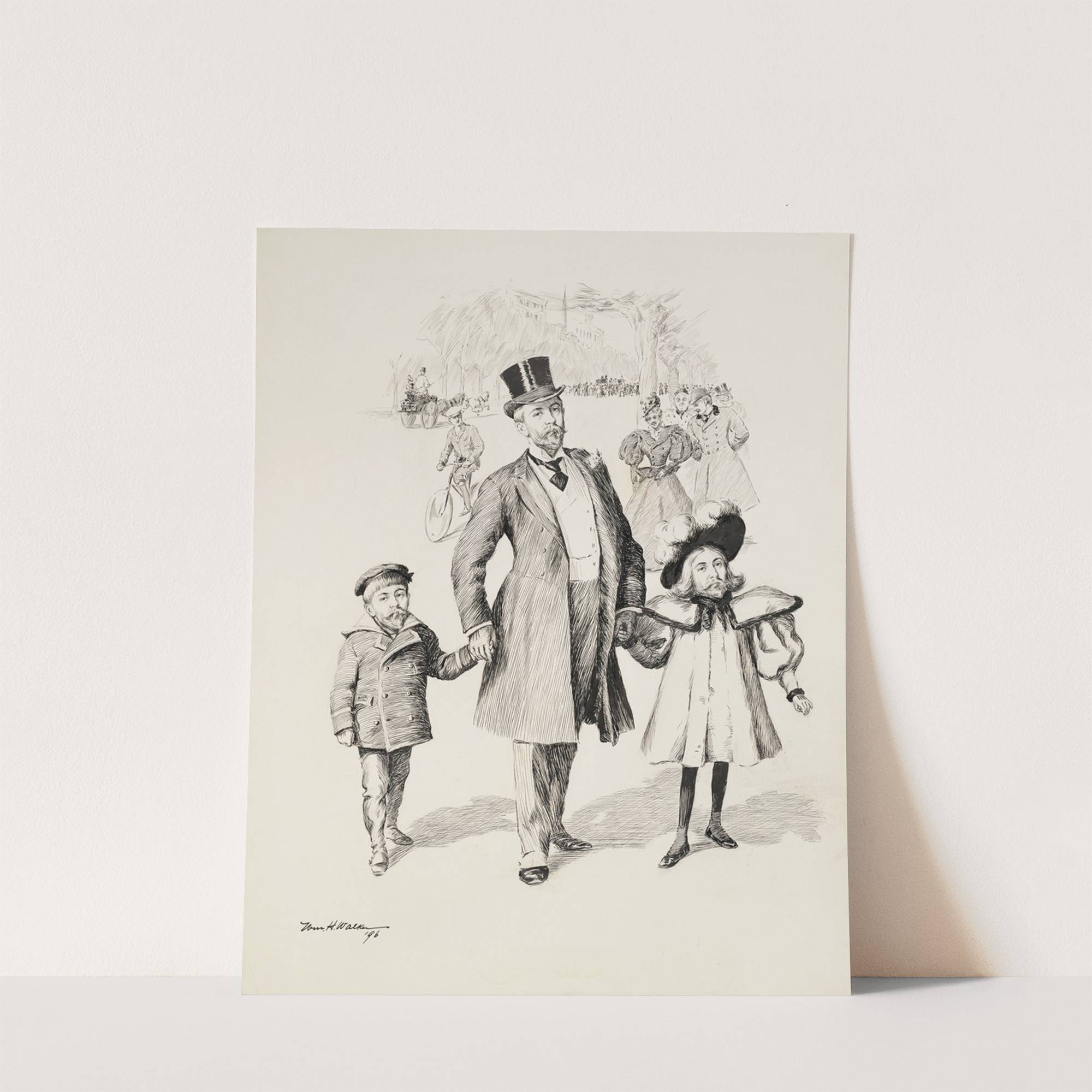 A man walks in a crowded park with his young son and daughter, only both children have the same face as him. (1896) by William Henry Walker - Wall Art Print