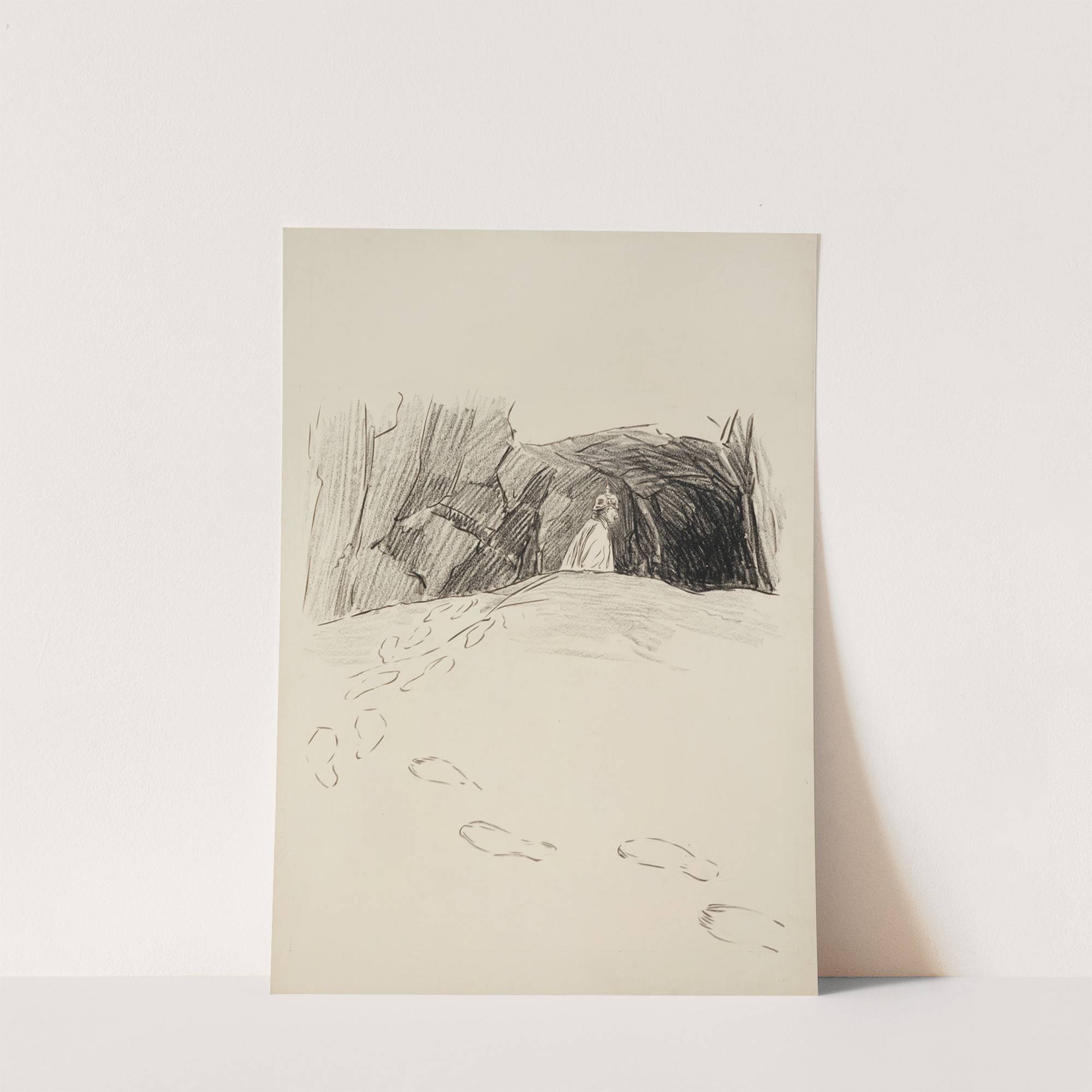 A Prussian soldier enters a cave, leaving large footprints behind him. by William Henry Walker - Wall Art Print