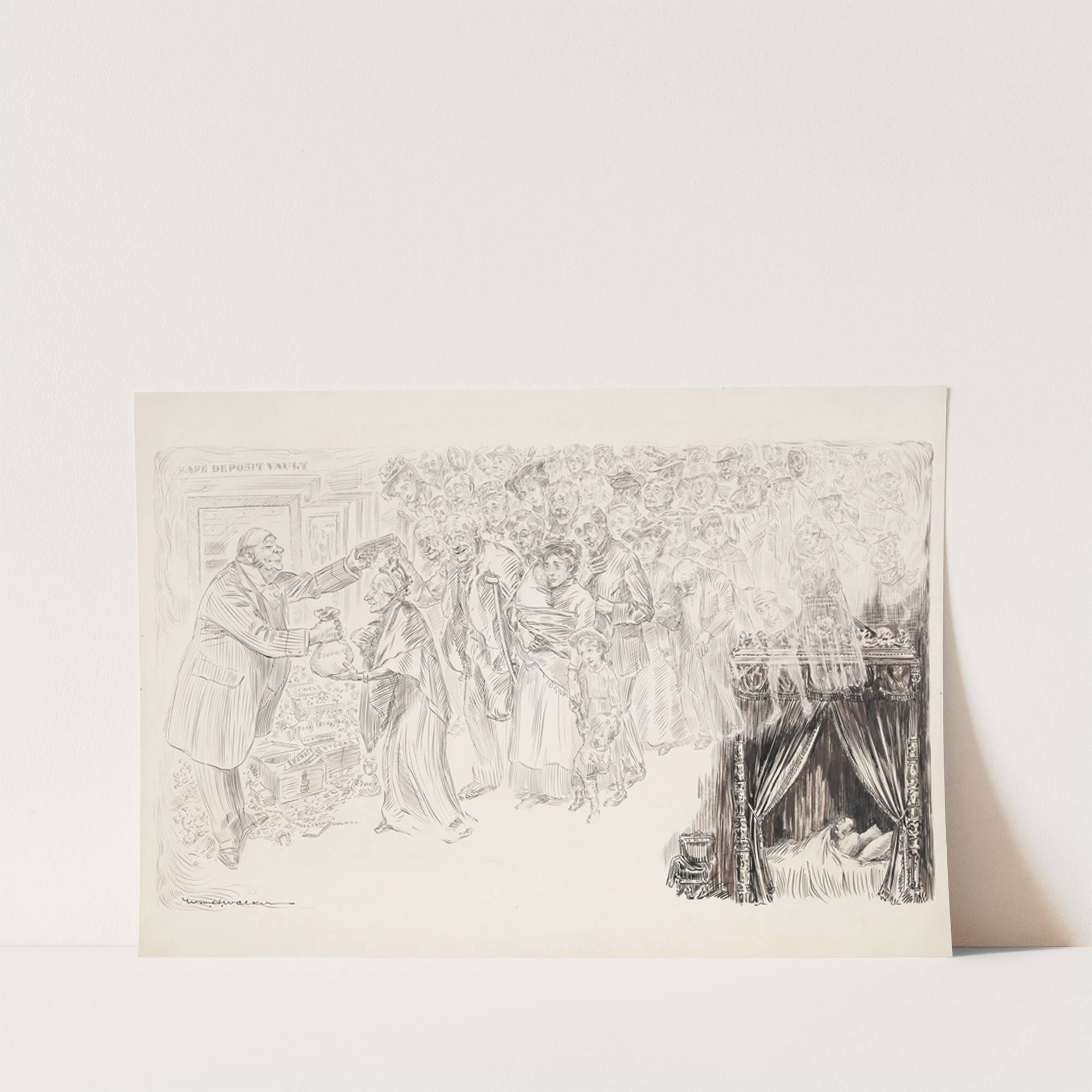 A rich man having a nightmare that he is freely giving his wealth away to women, children, the sick, and the elderly (1911) by William Henry Walker - Wall Art Print