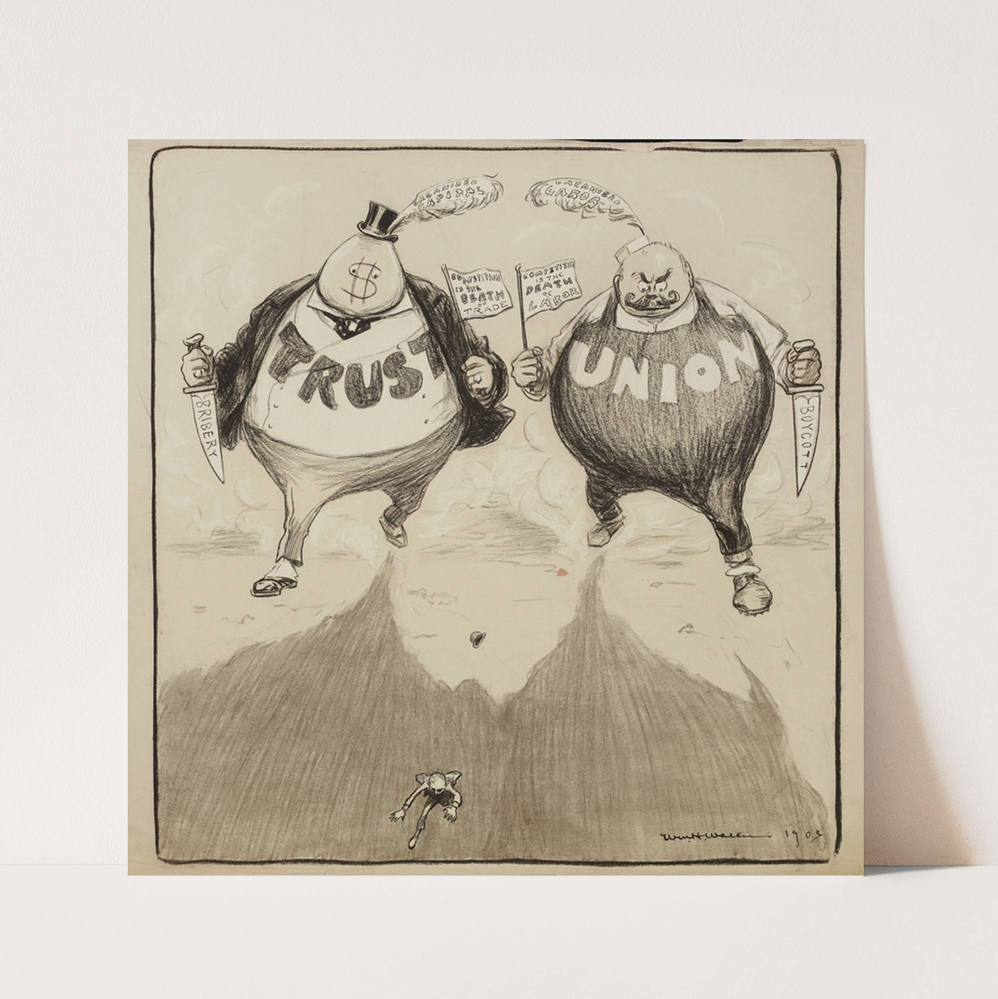A small man runs from two giants (1903) by William Henry Walker - Wall Art Print