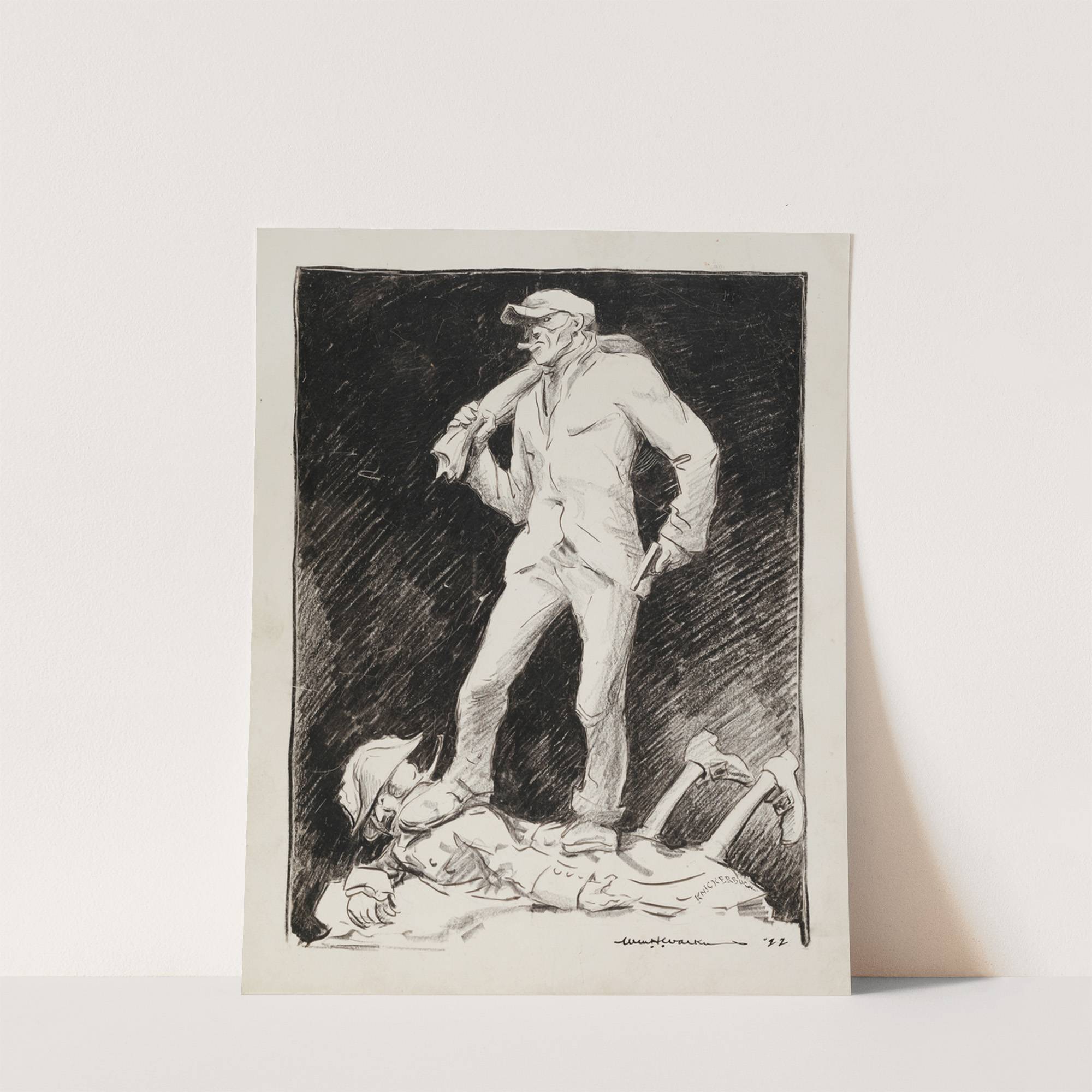 A thief with a sack and gun stands on top of a fallen man identified as ‘knickerbock’ (1922_1922) by William Henry Walker - Wall Art Print