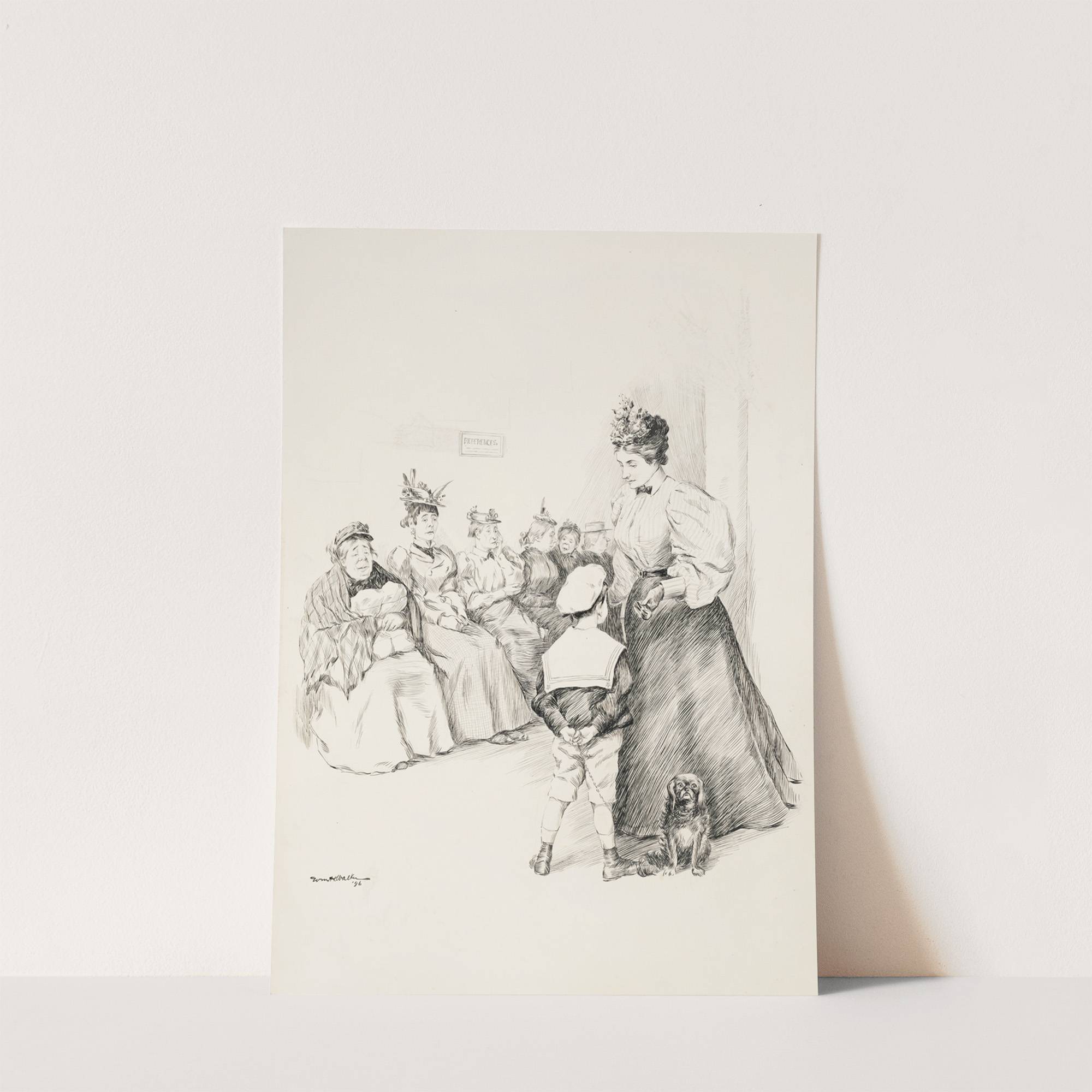 A woman talks to a boy and his dog (1896) by William Henry Walker - Wall Art Print