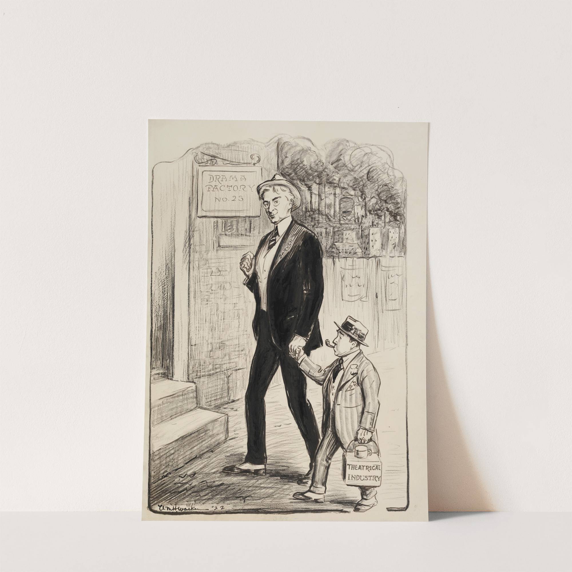 Bernard Baruch leads a small man representing the theatrical industry by the hand to a building labeled ‘drama factory no. 25.’ (1922) by William Henry Walker - Wall Art Print