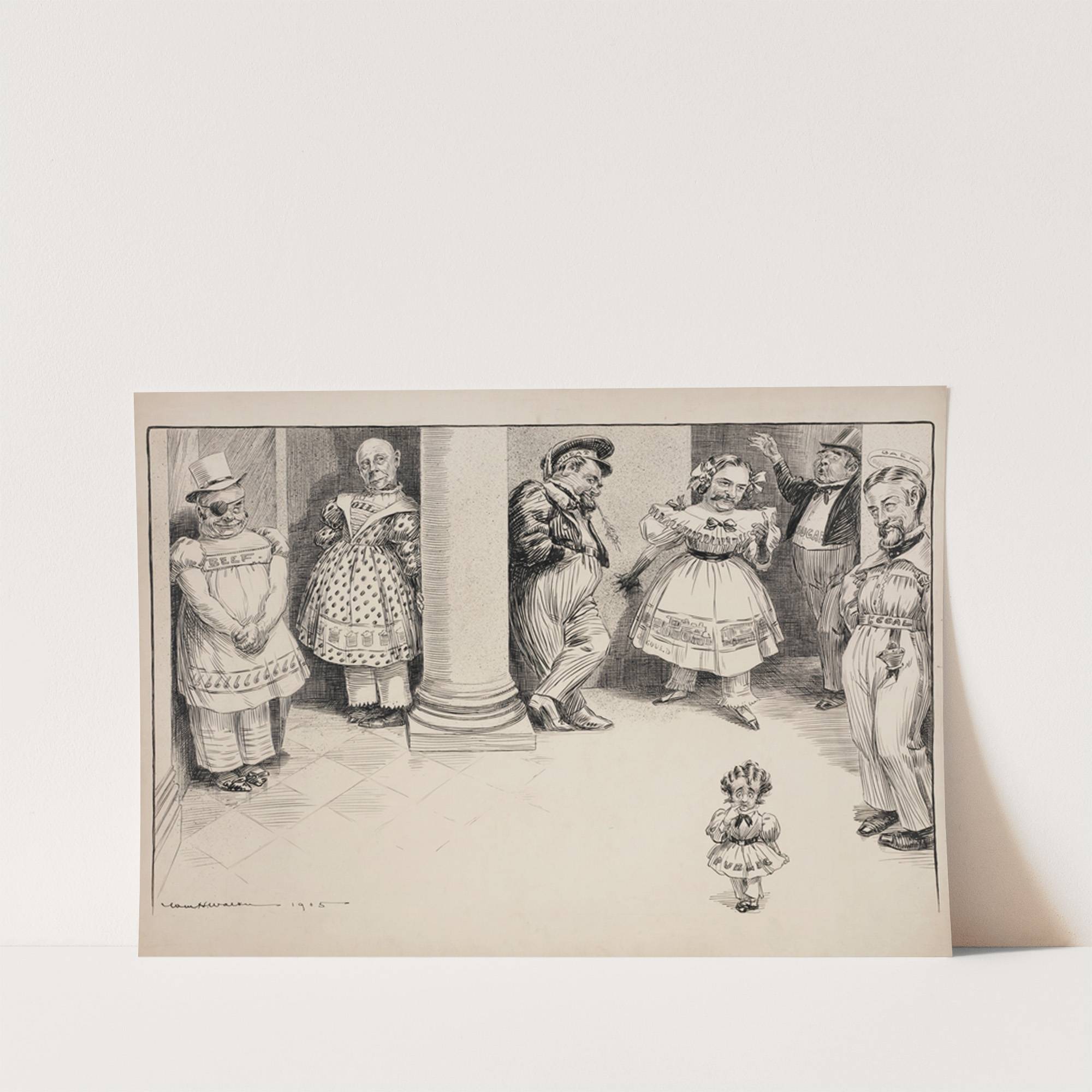 Men representing Trusts (beef, oil, wheat, sugar, coal) and Gould stand around a large room (1905) by William Henry Walker - Wall Art Print