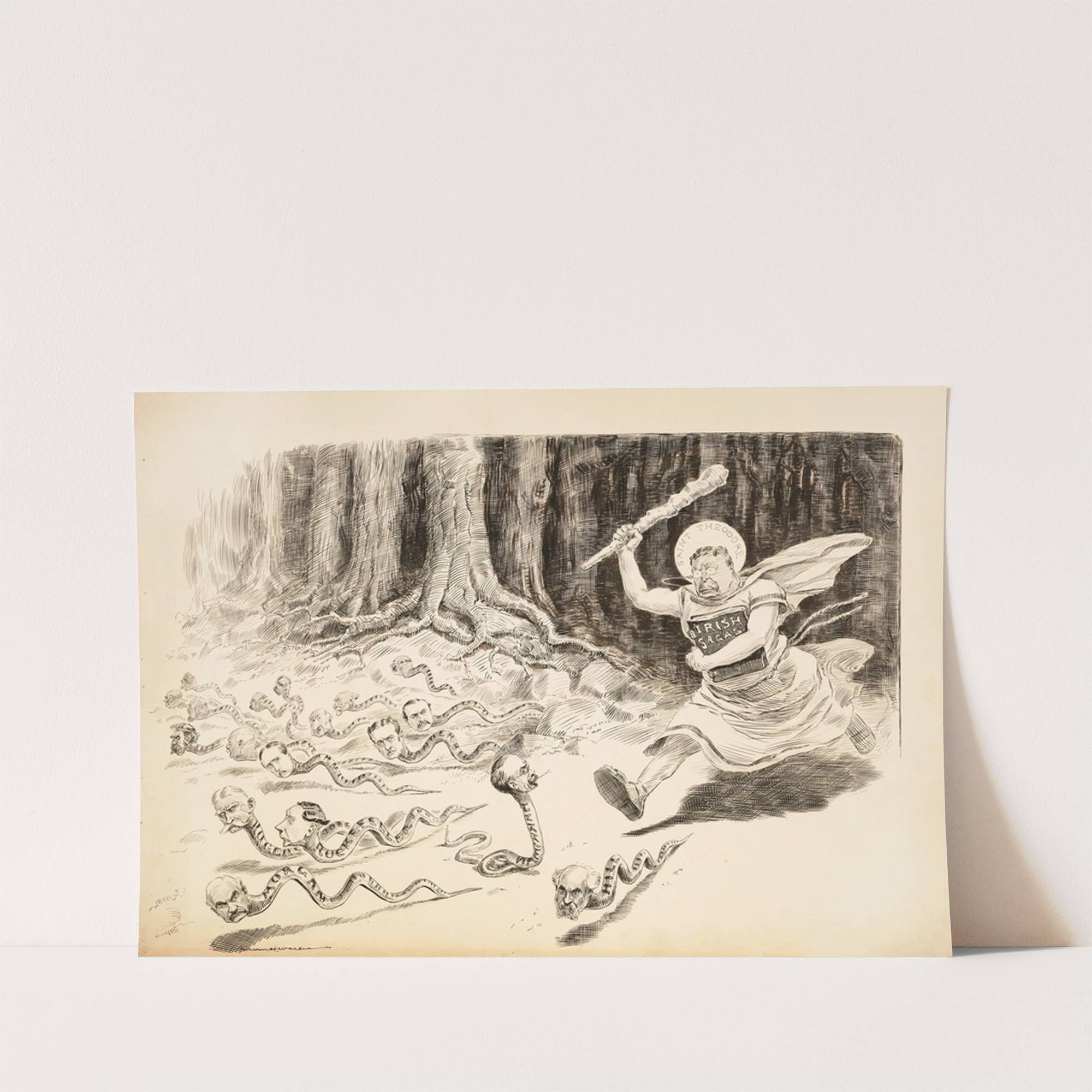 President Theodore Roosevelt, depicted as St. Patrick, chases snakes with the heads of men (1907) by William Henry Walker - Wall Art Print