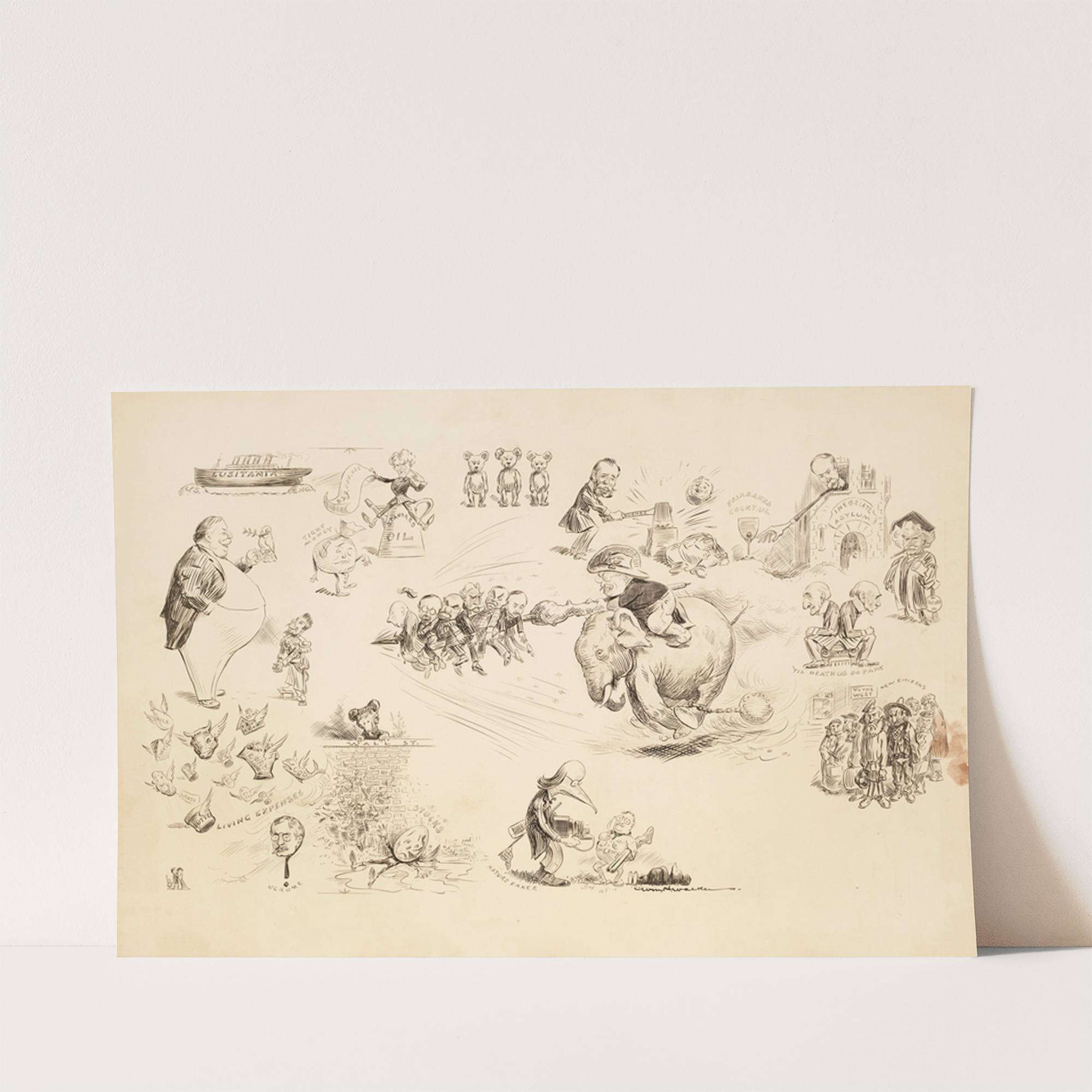 President Theodore Roosevelt rides the Republican Party elephant like a charger, spearing several men with his lance, shaped like a big stick (1907) by William Henry Walker - Wall Art Print