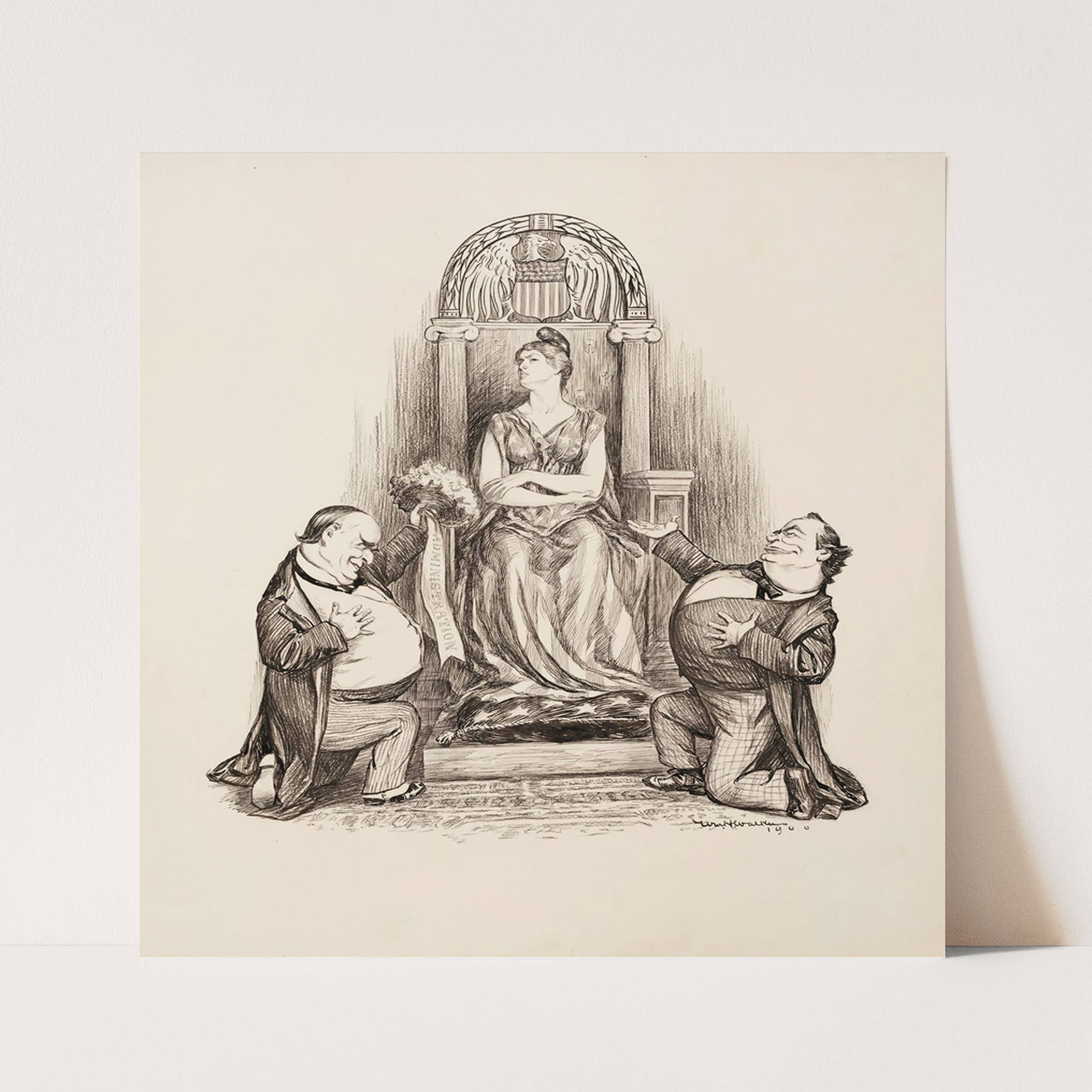 President William McKinley (Republican) and his opponent William Jennings Bryan (Democrat) both try to woe a woman sitting on a throne (1900) by William Henry Walker - Wall Art Print