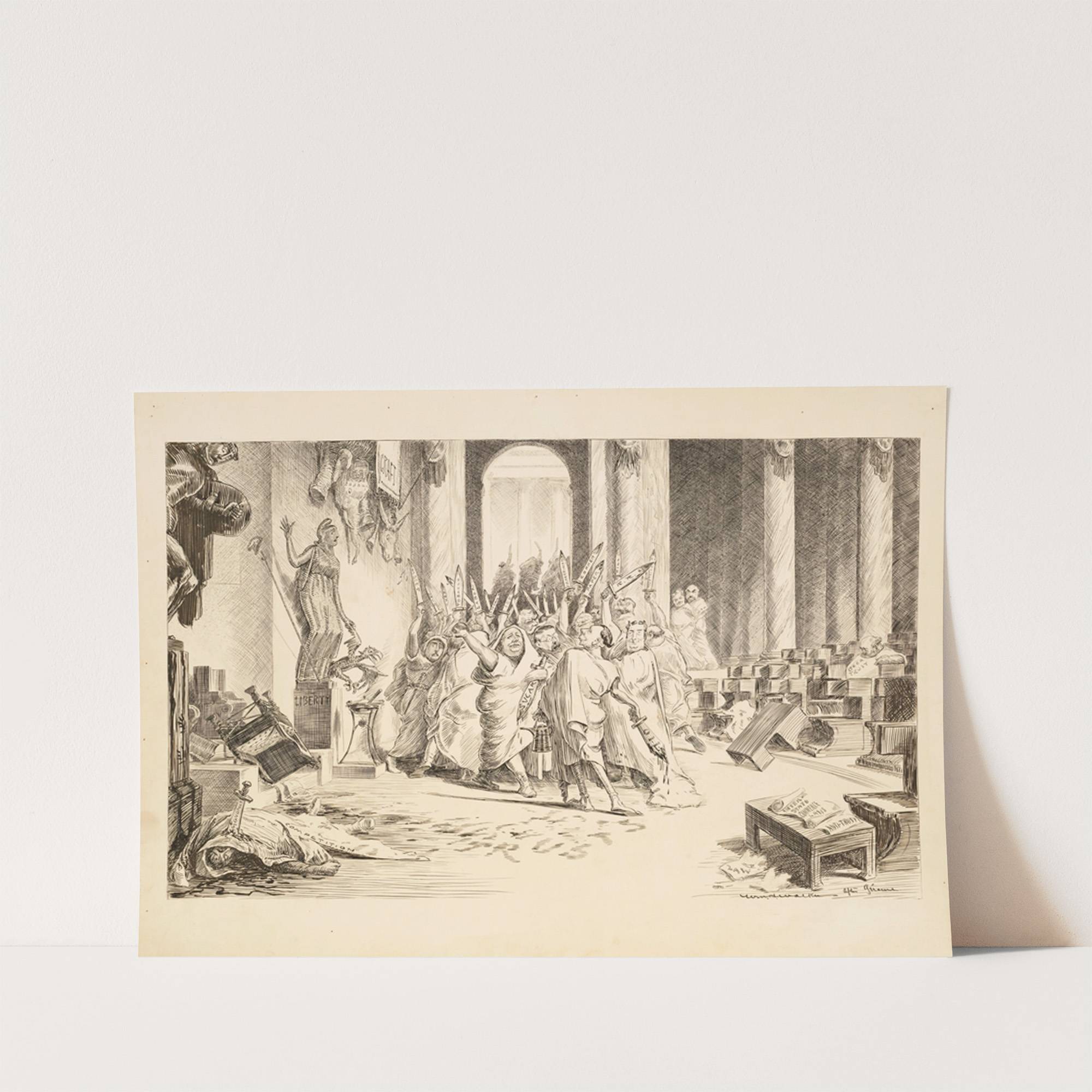 Robed men with bloody swords representing many Trusts have taken over a palace (1906) by William Henry Walker - Wall Art Print