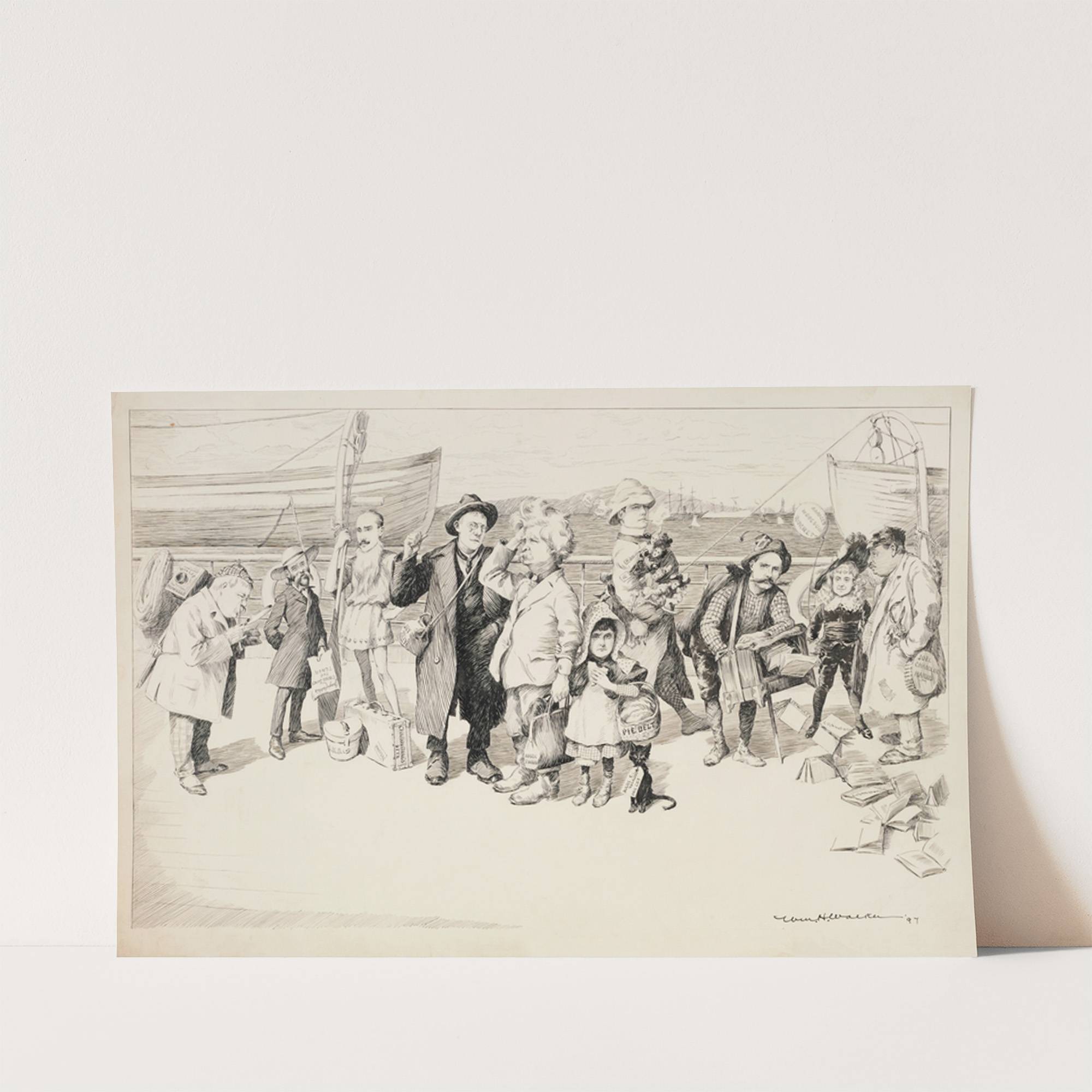 Several historical figures standing on a dock, including Mark Twain, Joel Chandler Harris, and Frances Hodgson Burkett. (1897) by William Henry Walker - Wall Art Print
