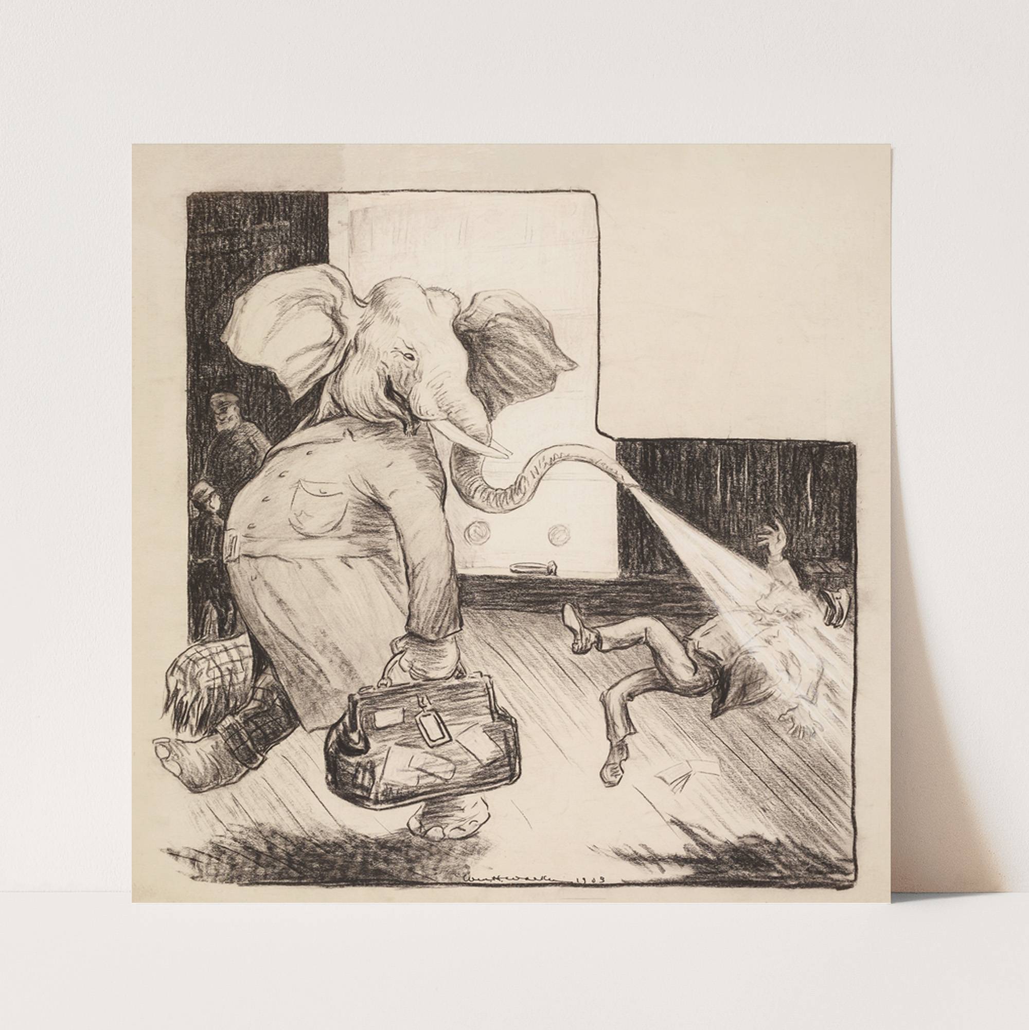 The Republican Party elephant blasts a man walking behind him with water from his trunk (1904) by William Henry Walker - Wall Art Print