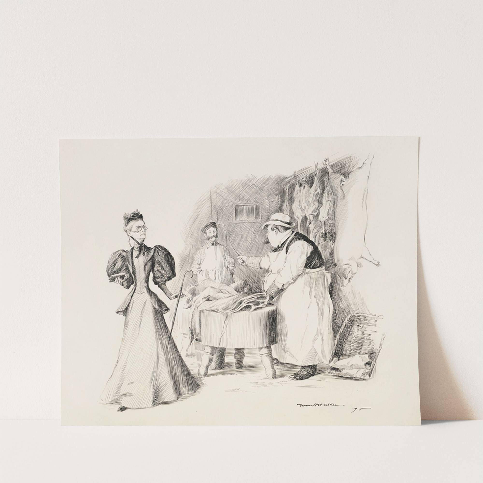Two butchers argue in their shop, watched by a stern woman. (1896) by William Henry Walker - Wall Art Print