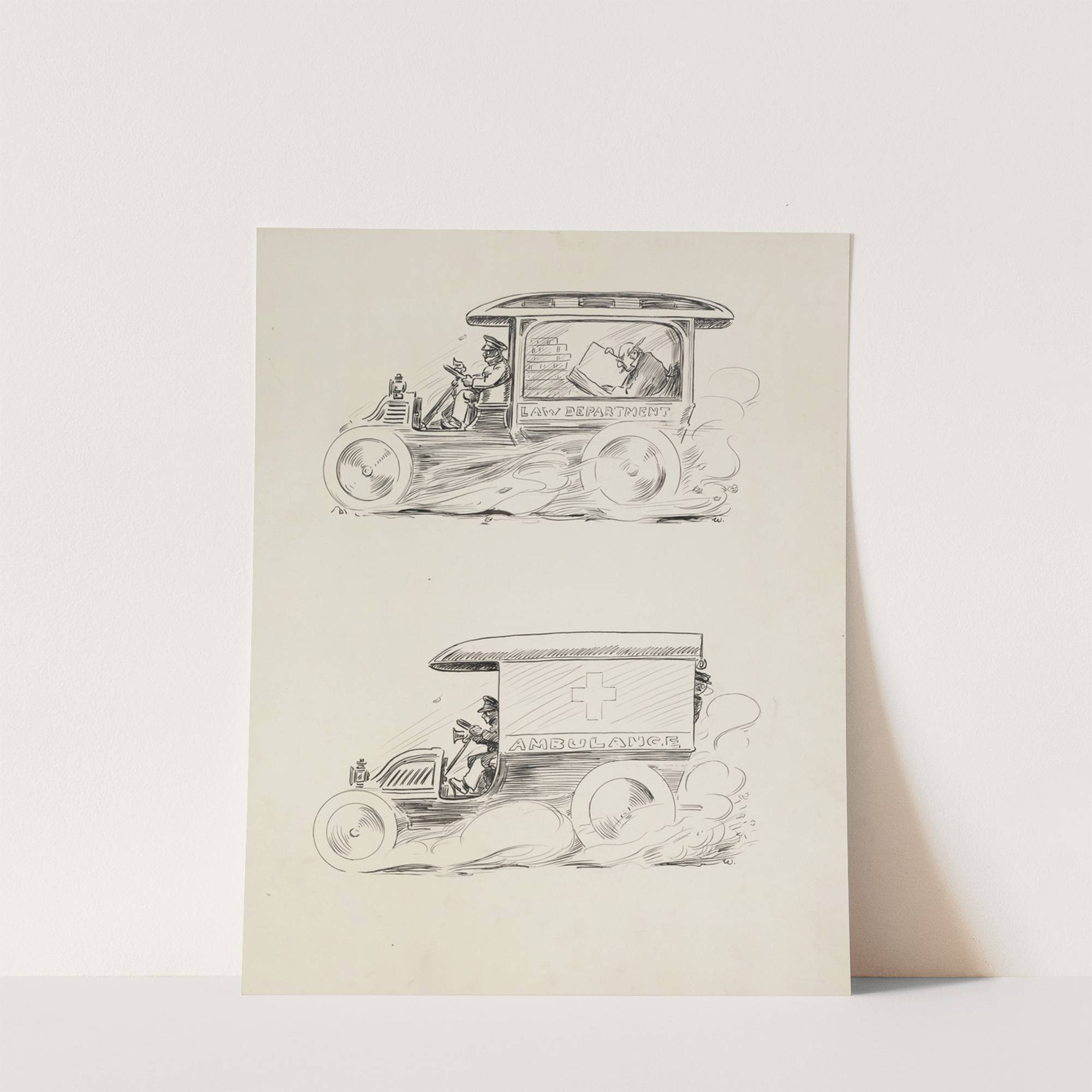 Two images of a vehicle. In the first it is a law department; in the second it is an ambulance. (1902) by William Henry Walker - Wall Art Print