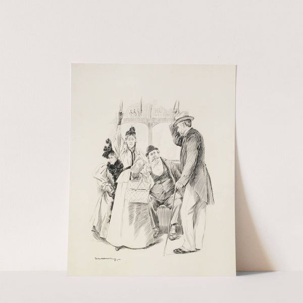 Two men and two women riding a street car. A fat man sits, forcing an older woman with a package to stand. (1896) by William Henry Walker - Wall Art Print