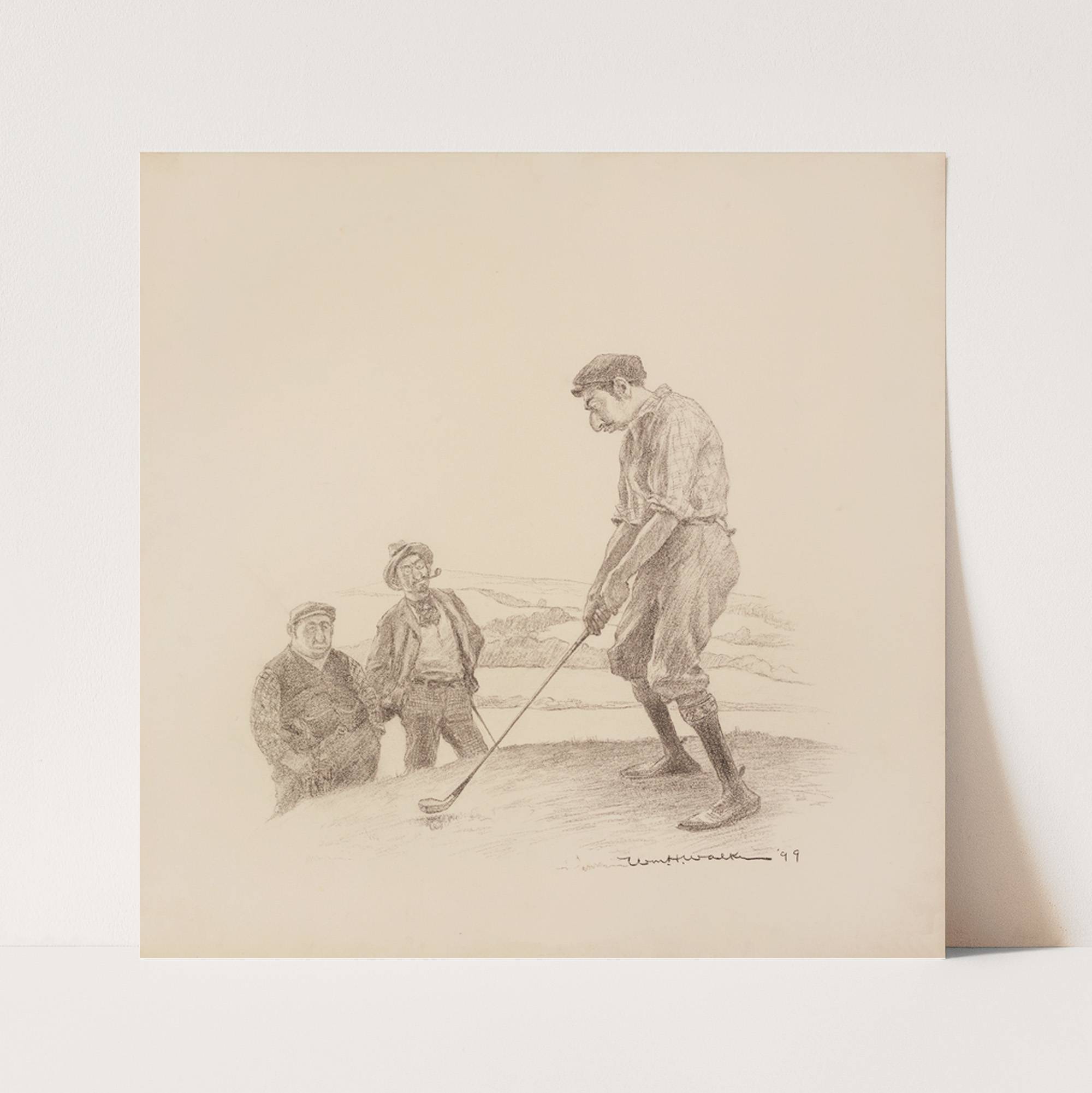 Two men watch a third about to swing a golf club. (1900) by William Henry Walker - Wall Art Print