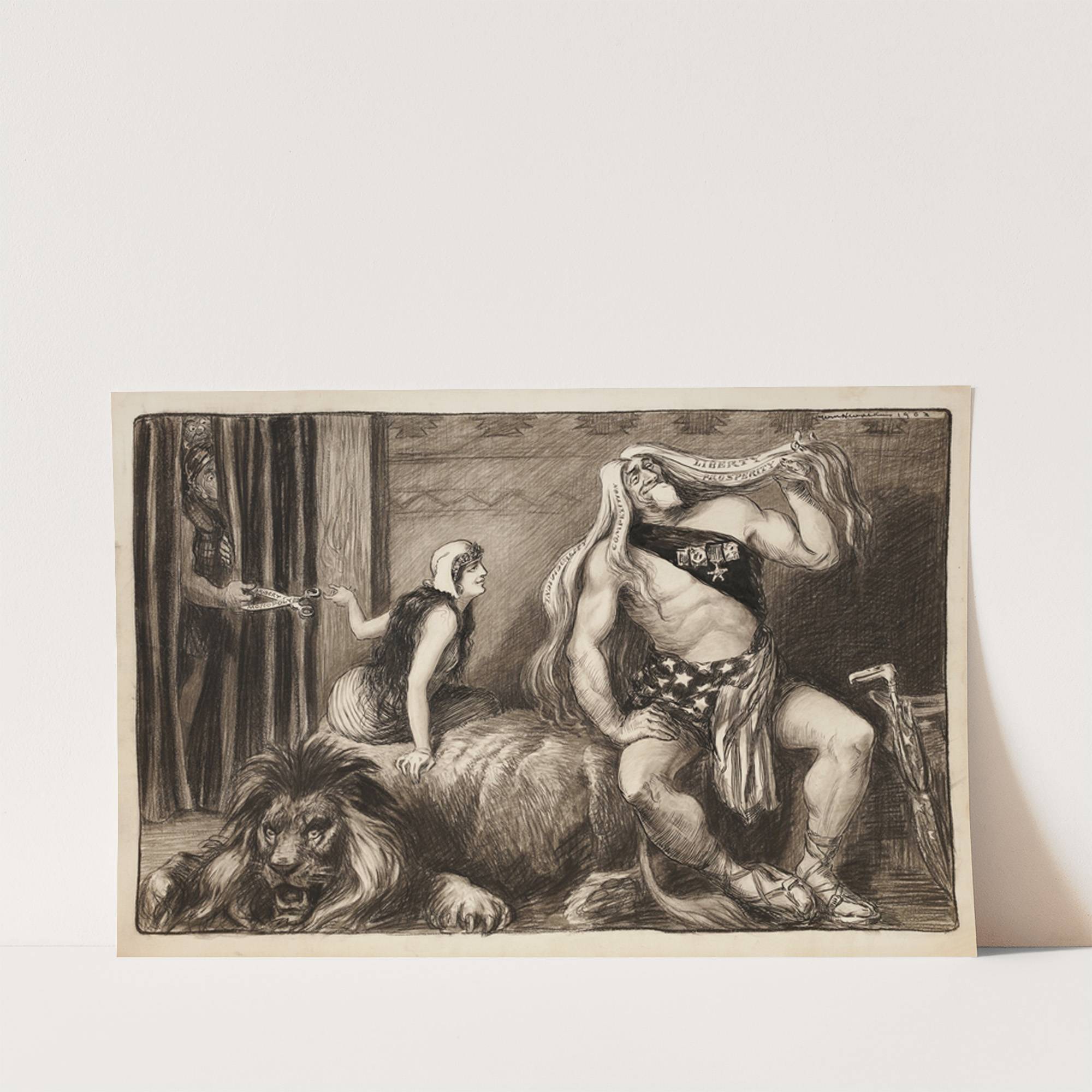 Uncle Sam as Sampson, admiring his long hair representing individuality, competition, liberty, and prosperity (1903) by William Henry Walker - Wall Art Print