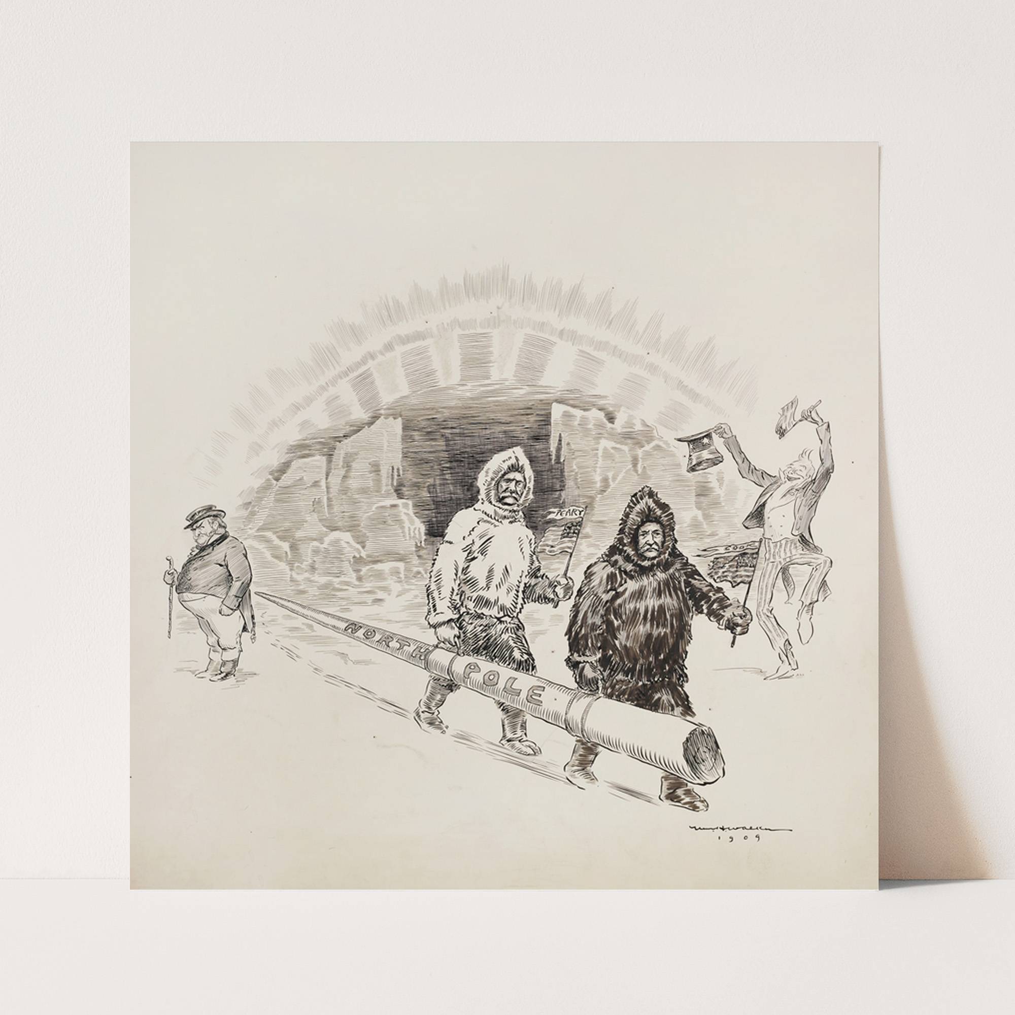 Uncle Sam cheers as explorers Perry and Cook make it to the North Pole for the United States (1909) by William Henry Walker - Wall Art Print