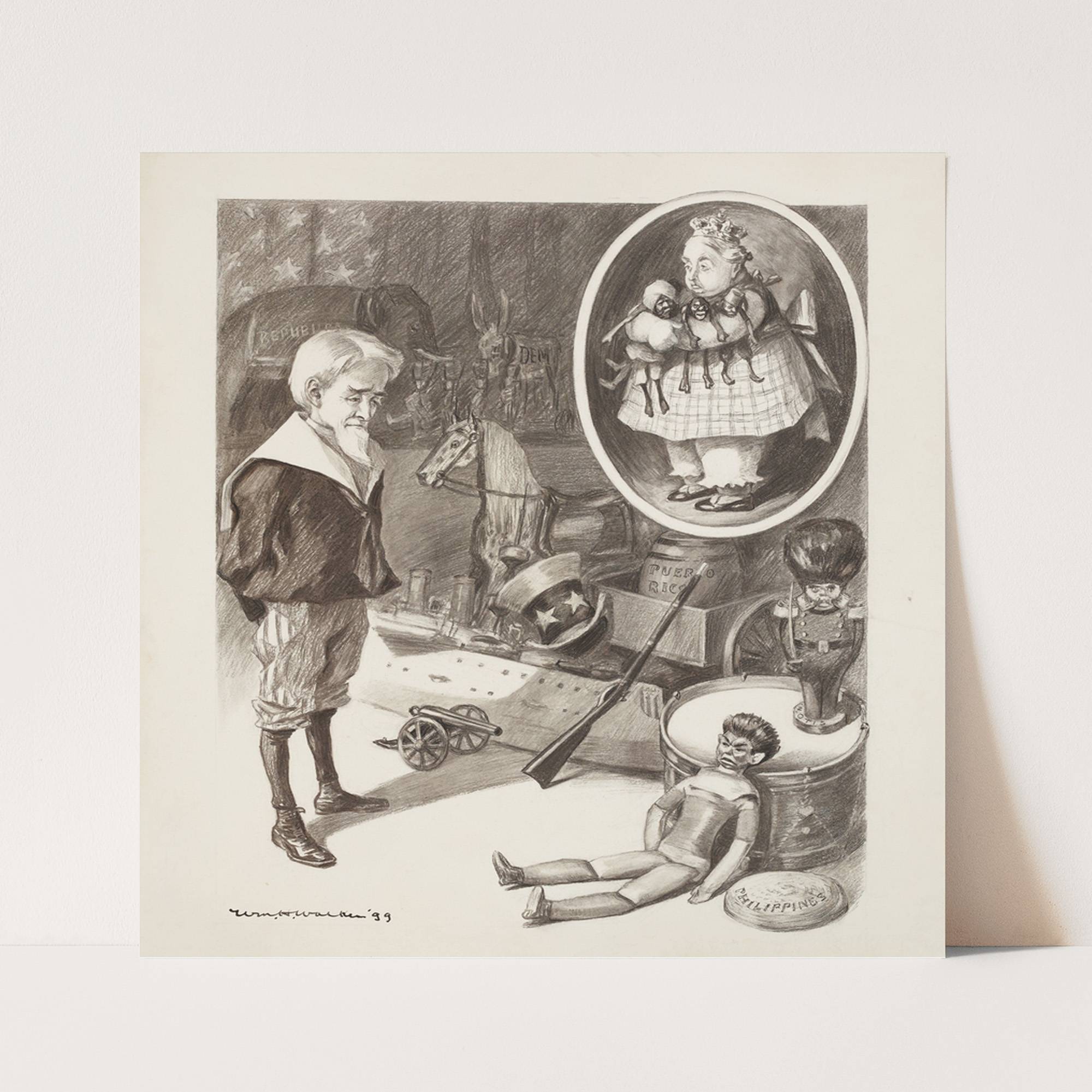Uncle Sam, depicted as a boy, looks over his toys (1899) by William Henry Walker - Wall Art Print