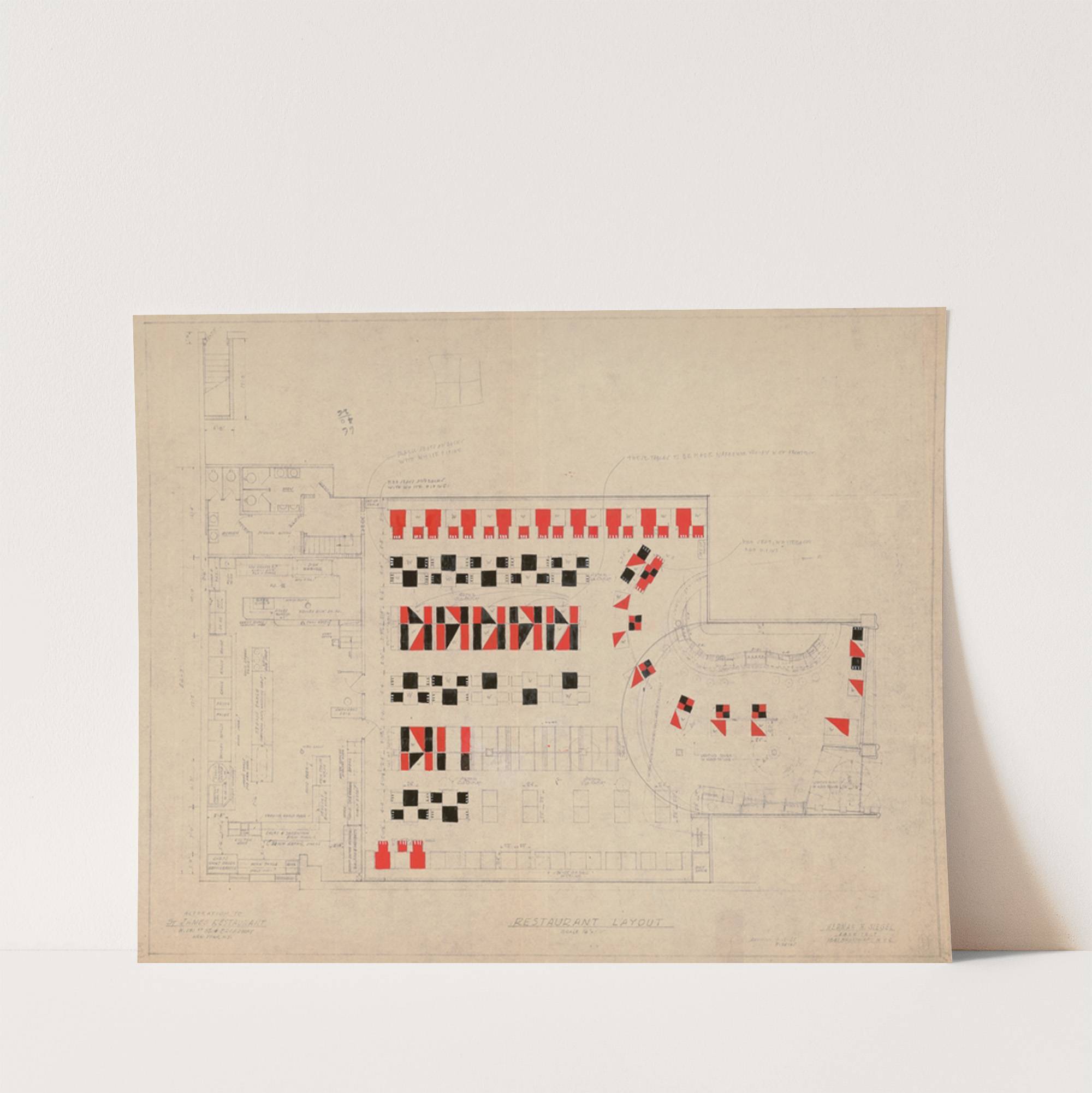 esigns and photographs for alterations to St. James Bar Restaurant, W. 181st St. and Broadway, New York, NY.] [Plan for restaurant layout of booths and tables (1945) by Winold Reiss - Wall Art Print