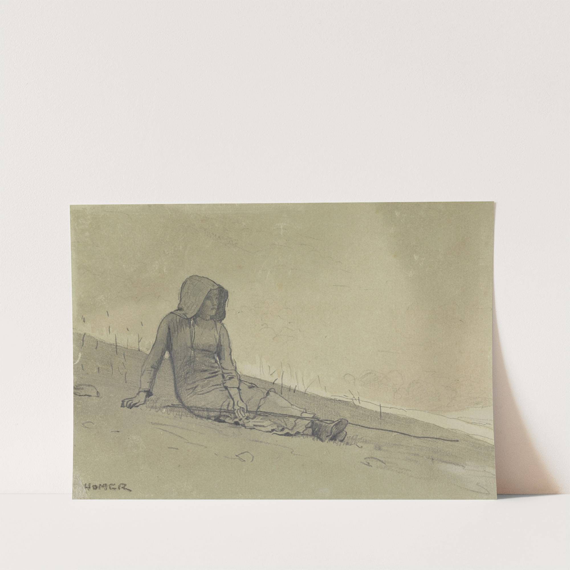 Girl Seated on a Hillside by Winslow Homer - Wall Art Print