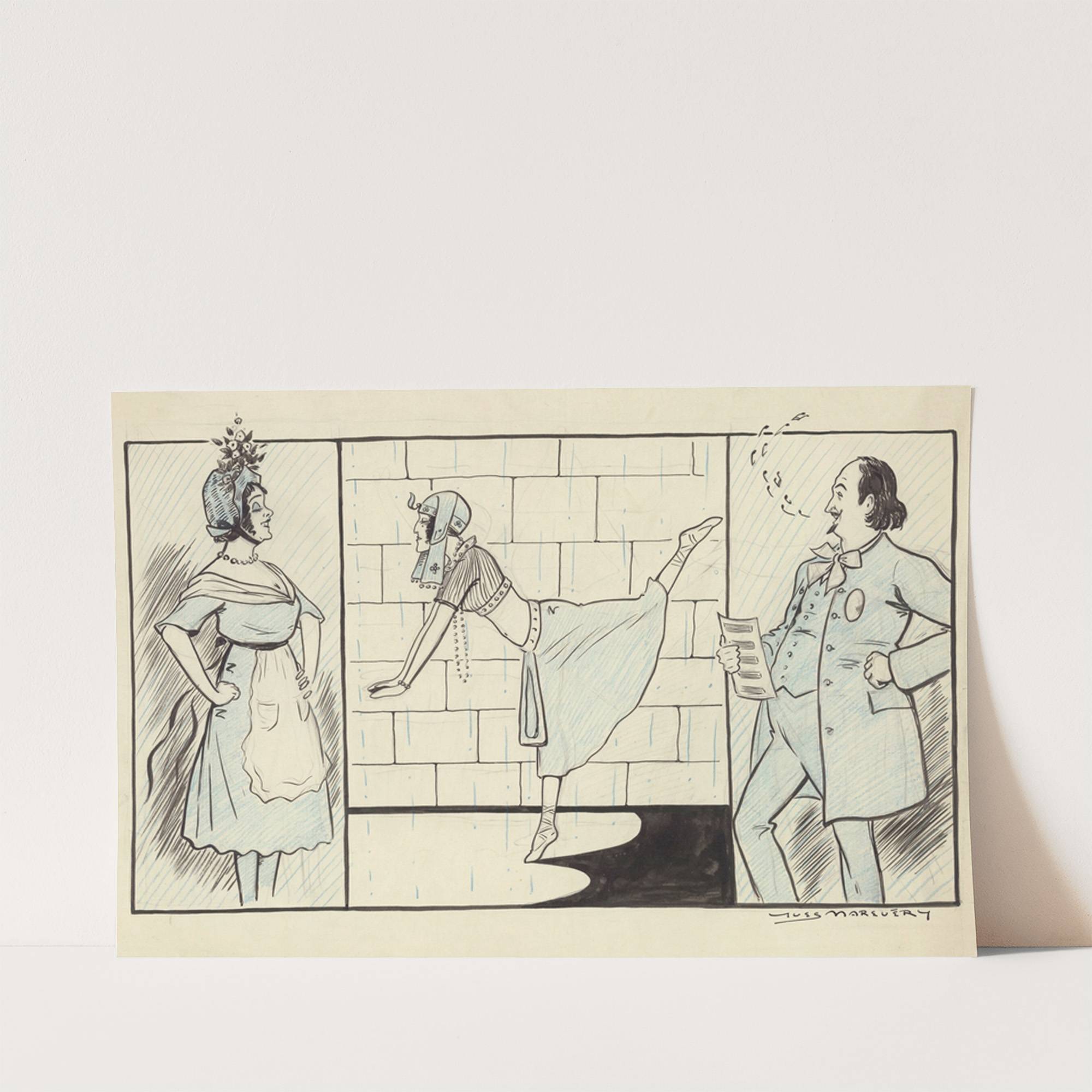 Edmée Favart, Régine Flory et Gabriel Signoret dans ‘Eh! Eh!…’ de Rip et Jacques Bousquet (1913) by Yves Marevéry - Wall Art Print