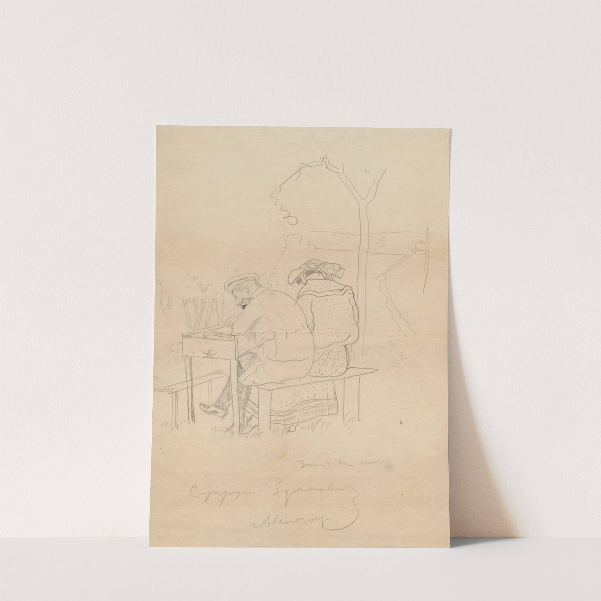 Zdanevich and his wife in a garden (1916) by Zygmunt Waliszewski - Wall Art Print