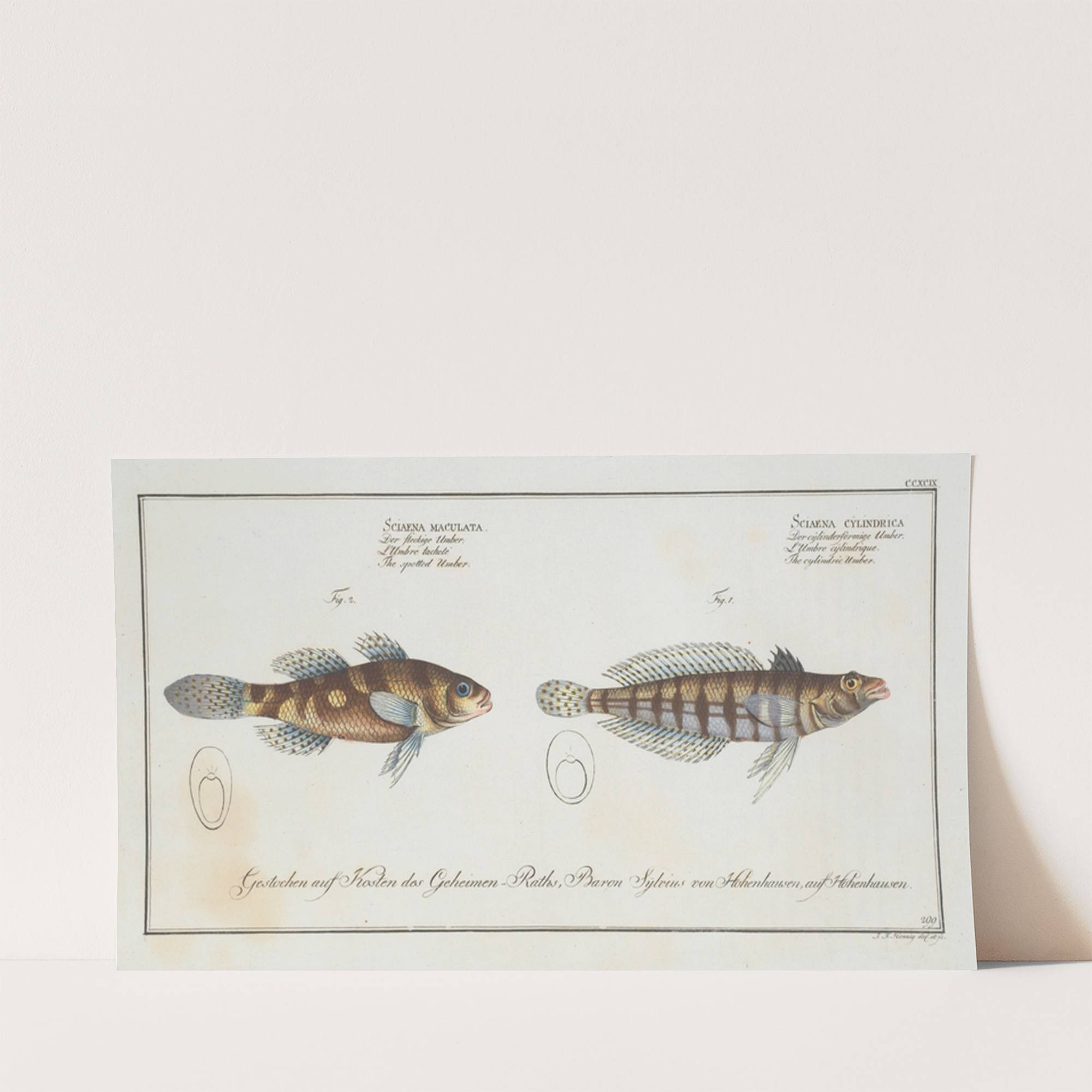 1.Sciaena cylindrica, The cylindric Umber; 2. Sciaena maculata, The spotted Umber. by Marcus Elieser Bloch - Wall Art Print