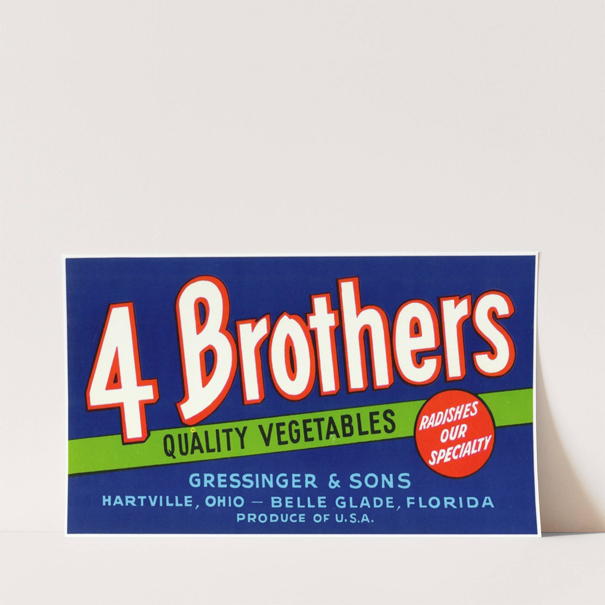 4 Brothers Quality Vegetables Label (1930-1950) - Wall Art Print