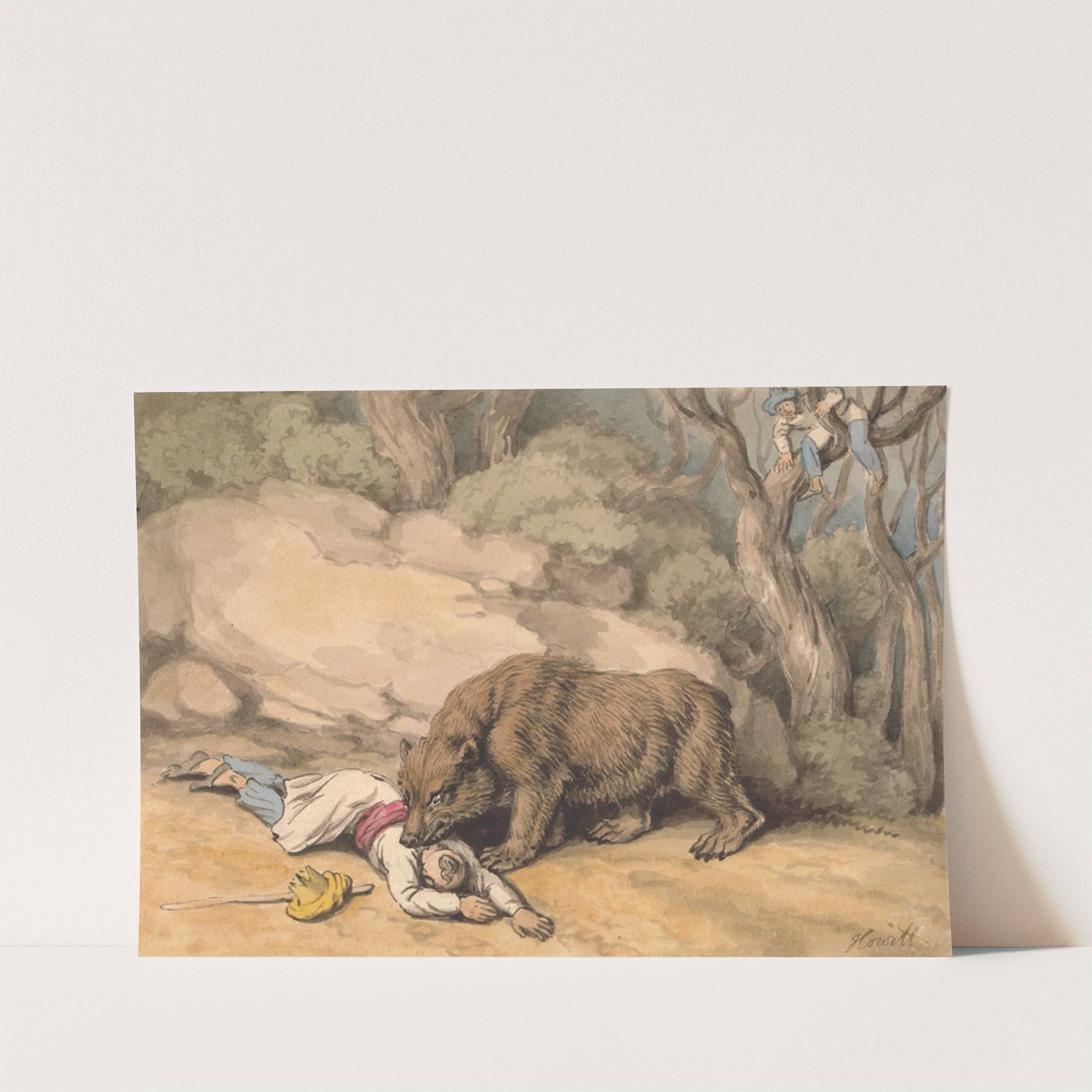 A Bear Attacking a Fallen Indian by Samuel Howitt - Wall Art Print