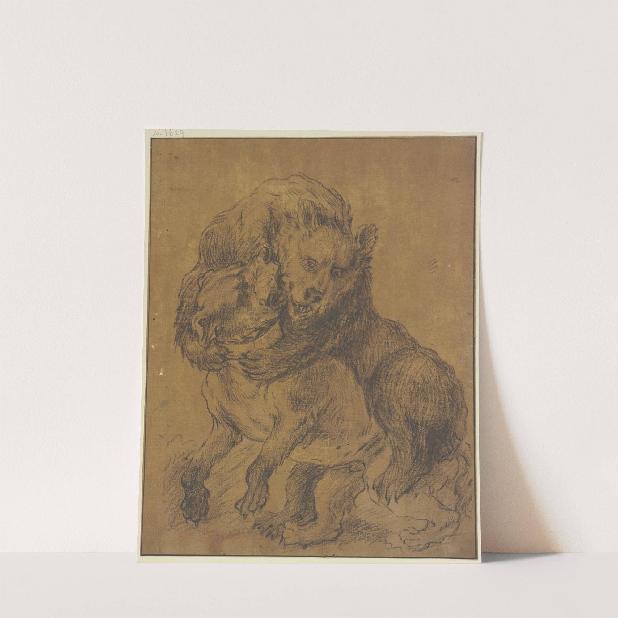 A bear strangling a dog by Johann Melchior Roos - Wall Art Print